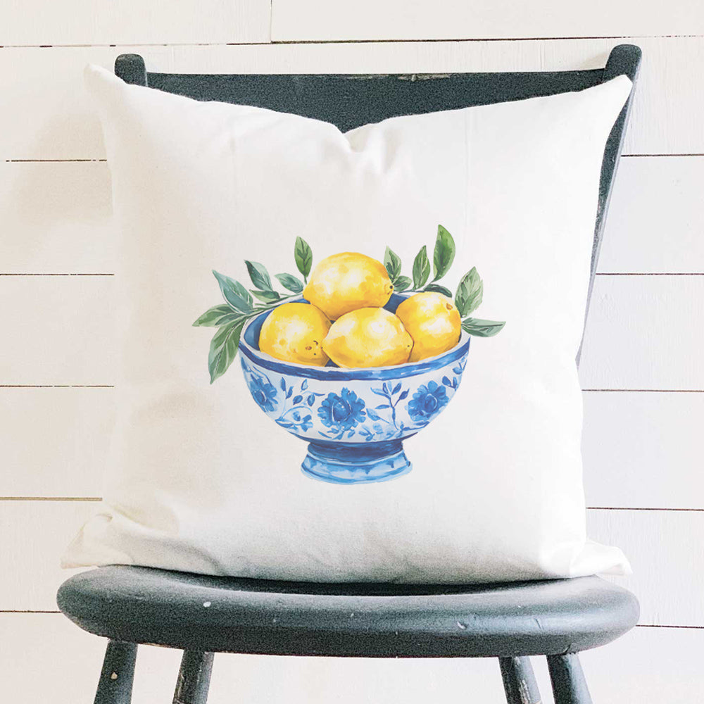 Blue Bowl of Lemons - Summer Square Canvas Pillow