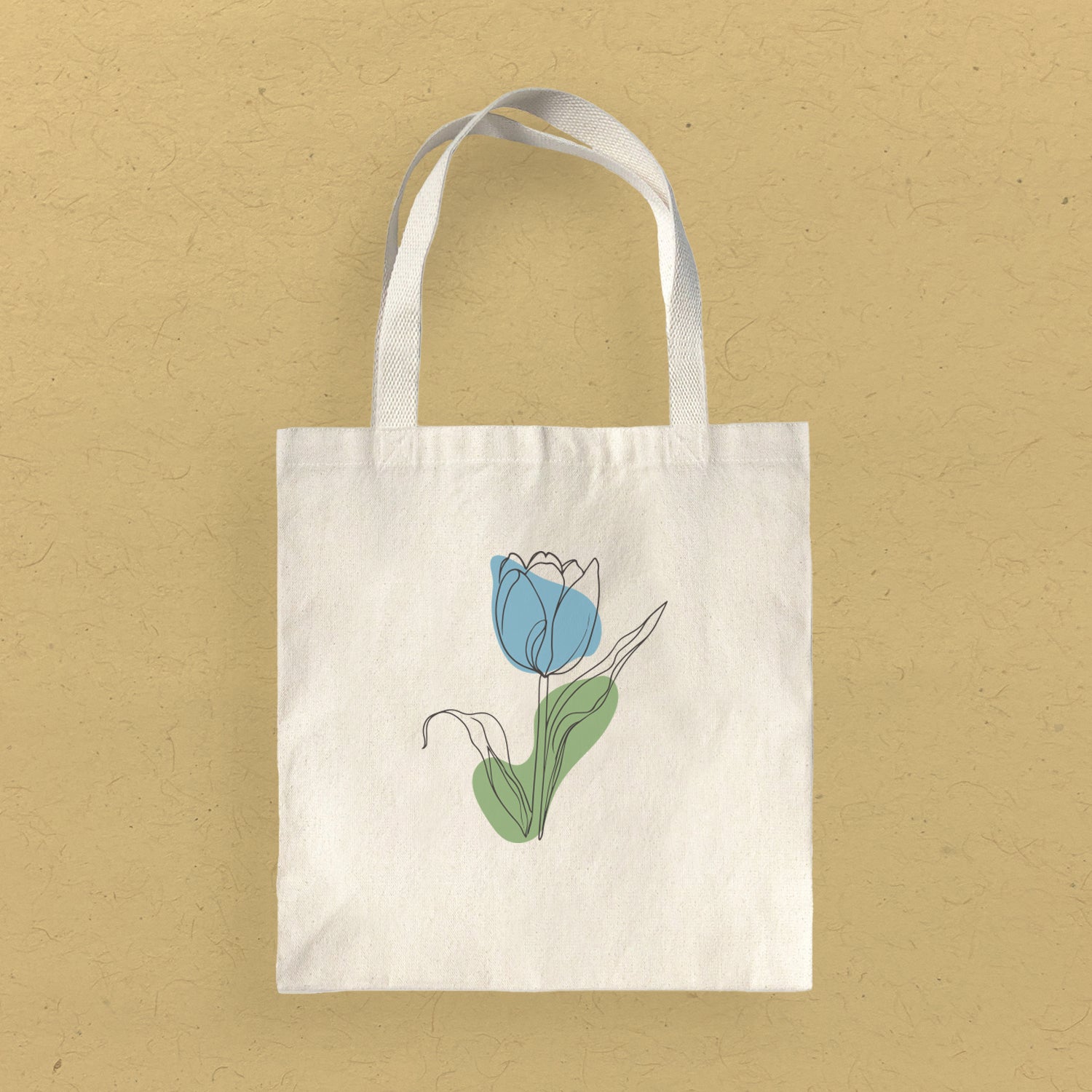 Blue Hand Drawn Tulip - Customizable Canvas Tote Bag