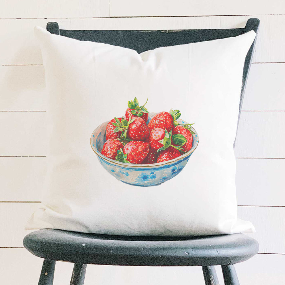 Bowl of Strawberries - Summer Square Canvas Pillow