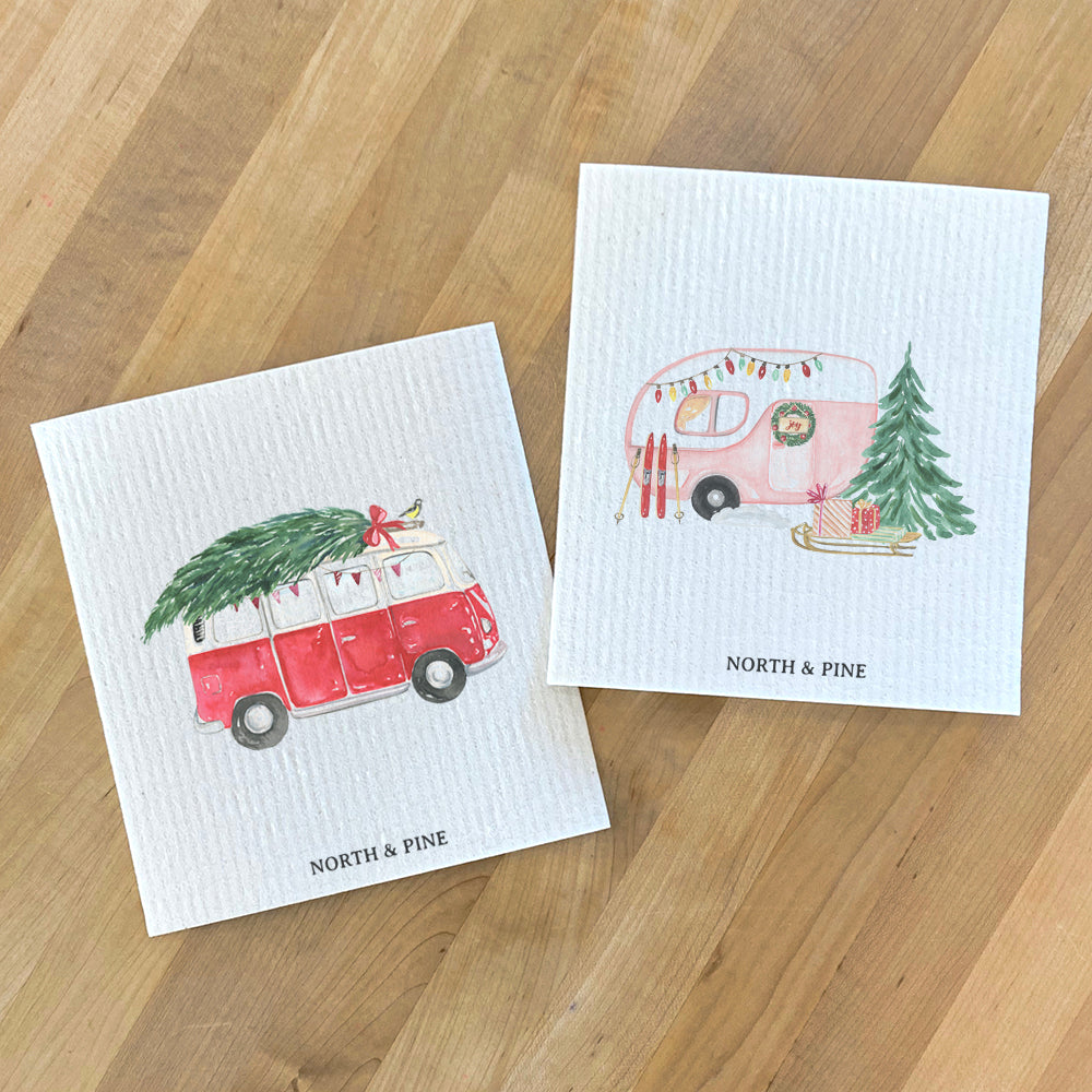 Christmas Camper, Vintage Van - 2pk Swedish Dish Cloth