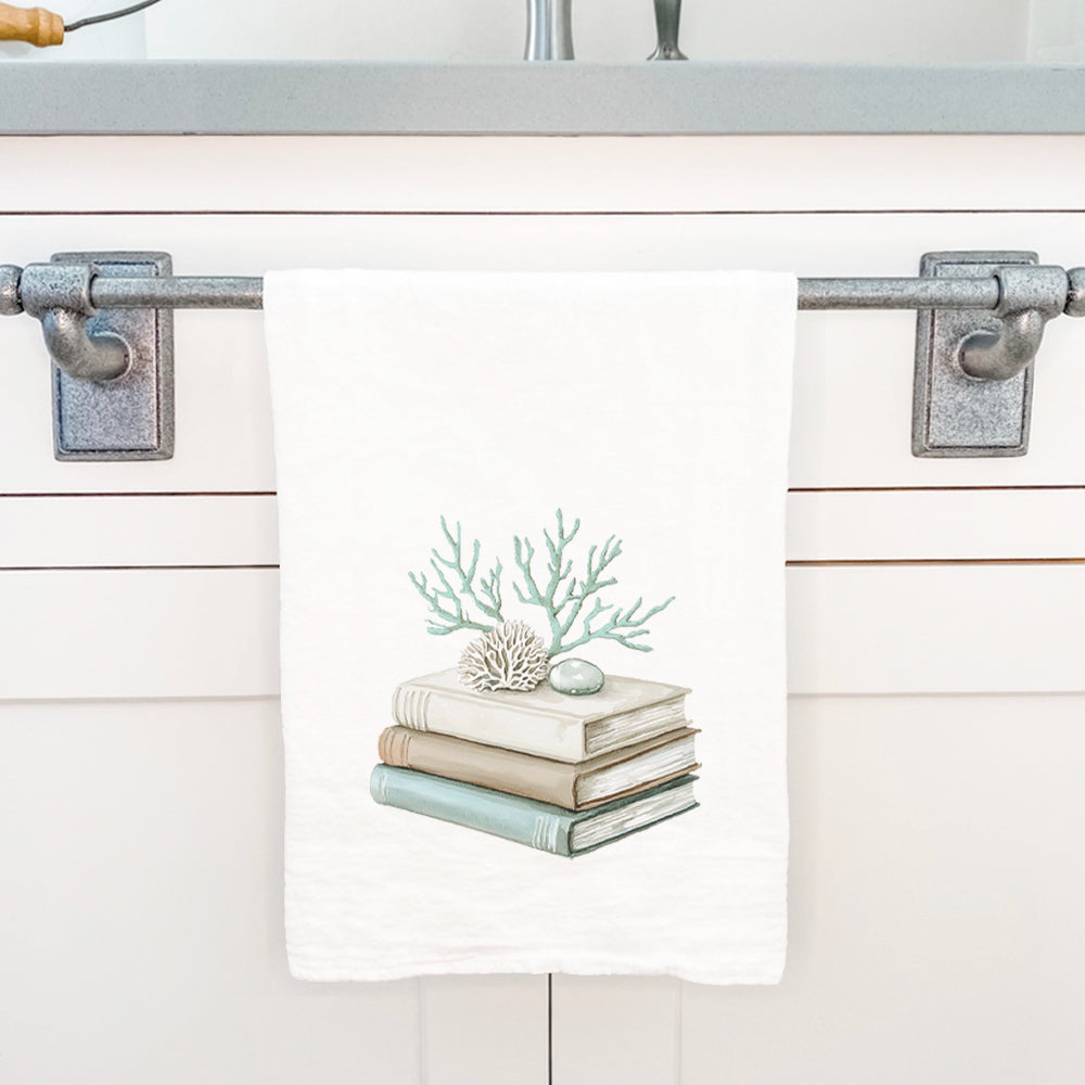 Coastal Book Stack - Customizable Cotton Tea Towel