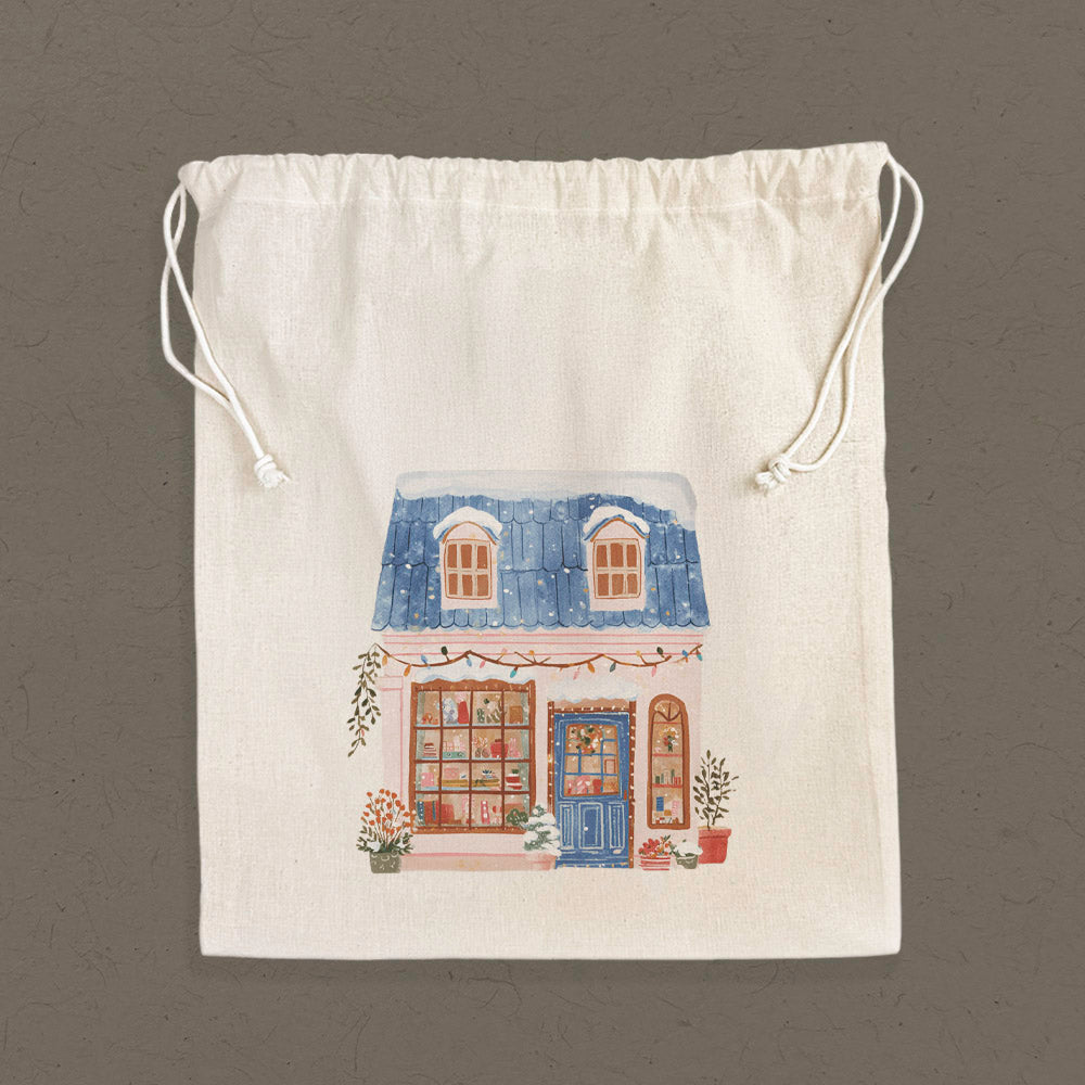 Cozy Winter Storefront - Customizable Cotton Cinch Bag