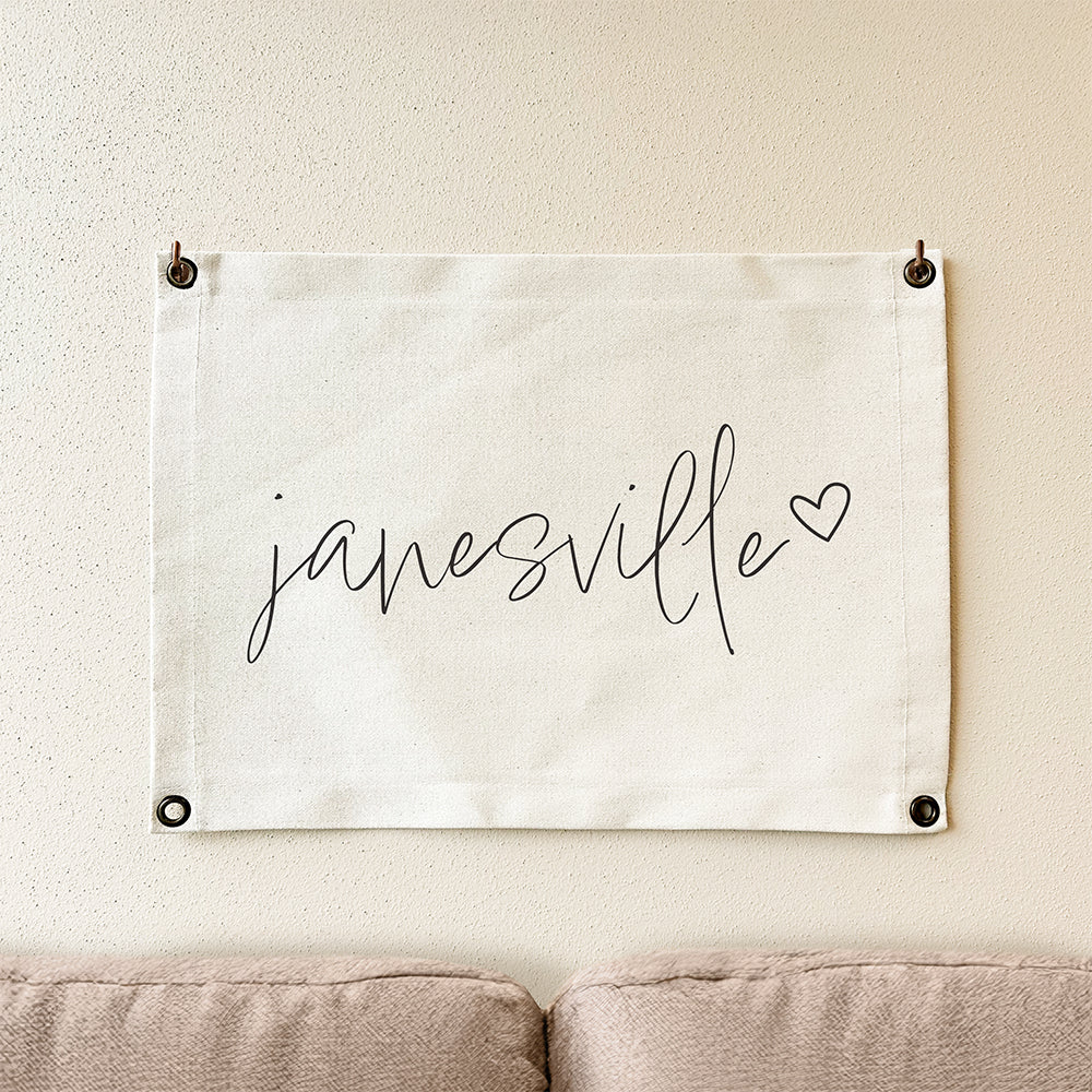 This High-quality canvas banner is made from durable cotton canvas with four metal grommets and clean hemmed edges, designed for easy hanging and long-lasting display. Each banner features a soft, natural texture and a structured form that holds its shape when mounted.