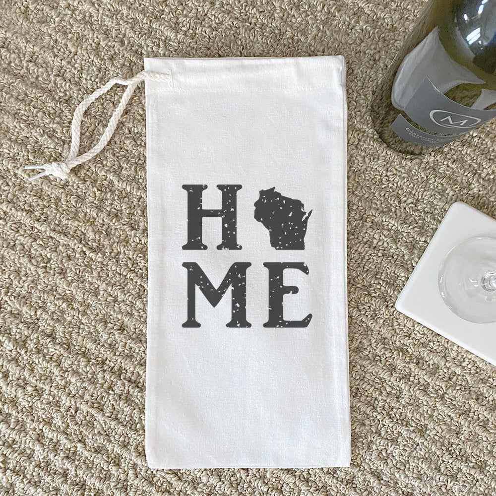 Distressed Home w/ State - Custom Canvas Wine Bag