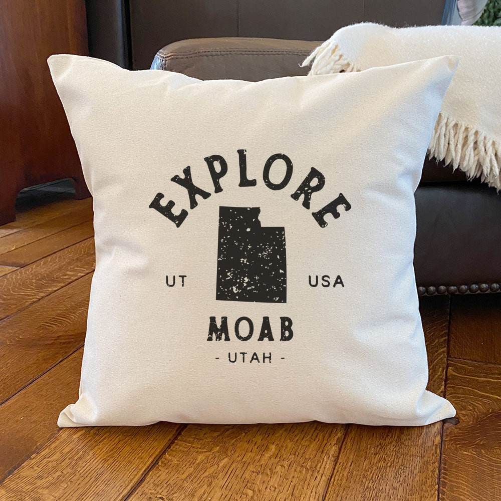 Explore State w/ City, State - Custom Square Canvas Pillow