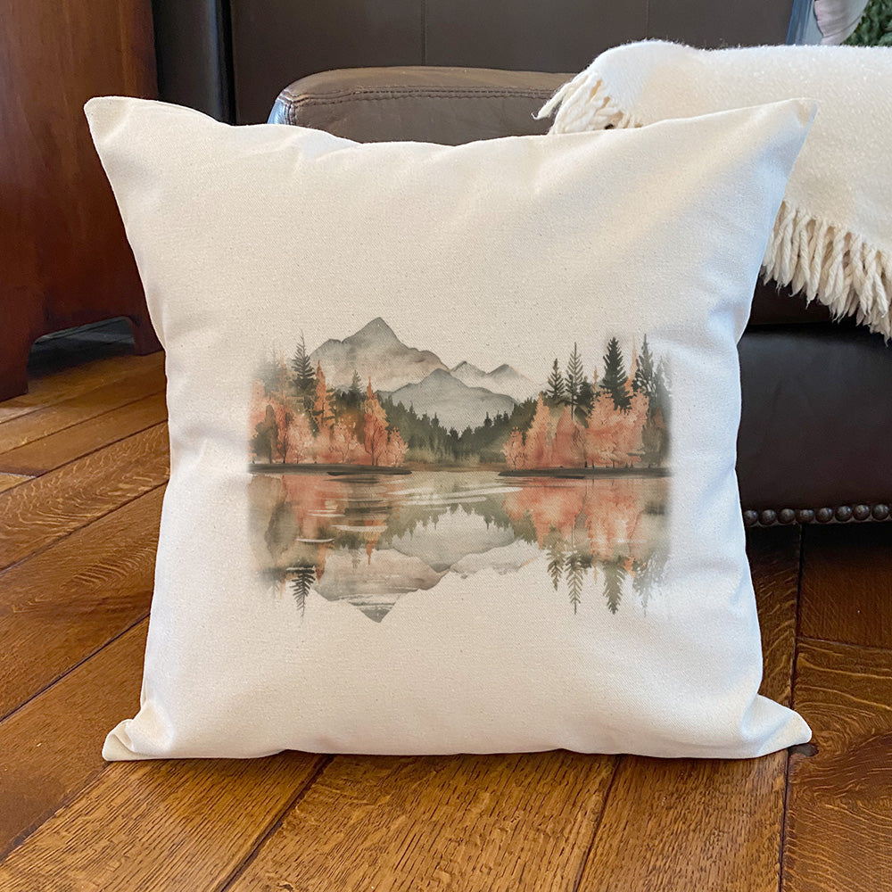 Fall Mountain Lake Scene - Customizable Square Canvas Pillow