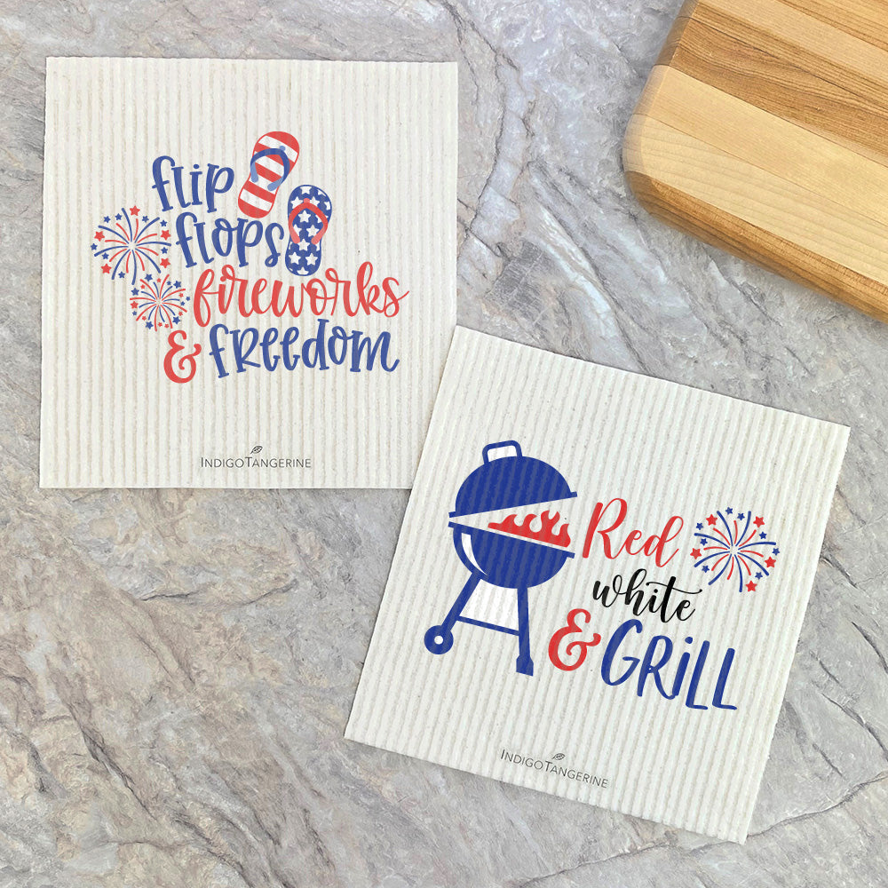Flip Flops Freedom, Red White Grill - 2pk Swedish Dish Cloth