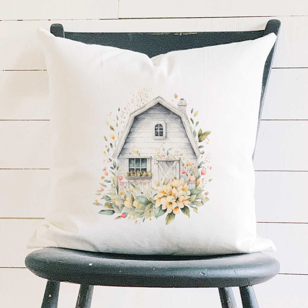Floral Barn - Square Canvas Pillow