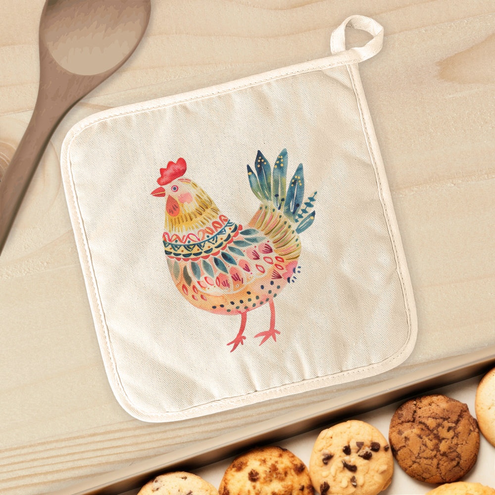 Folk-Art Chicken - Spring Cotton Pot Holder