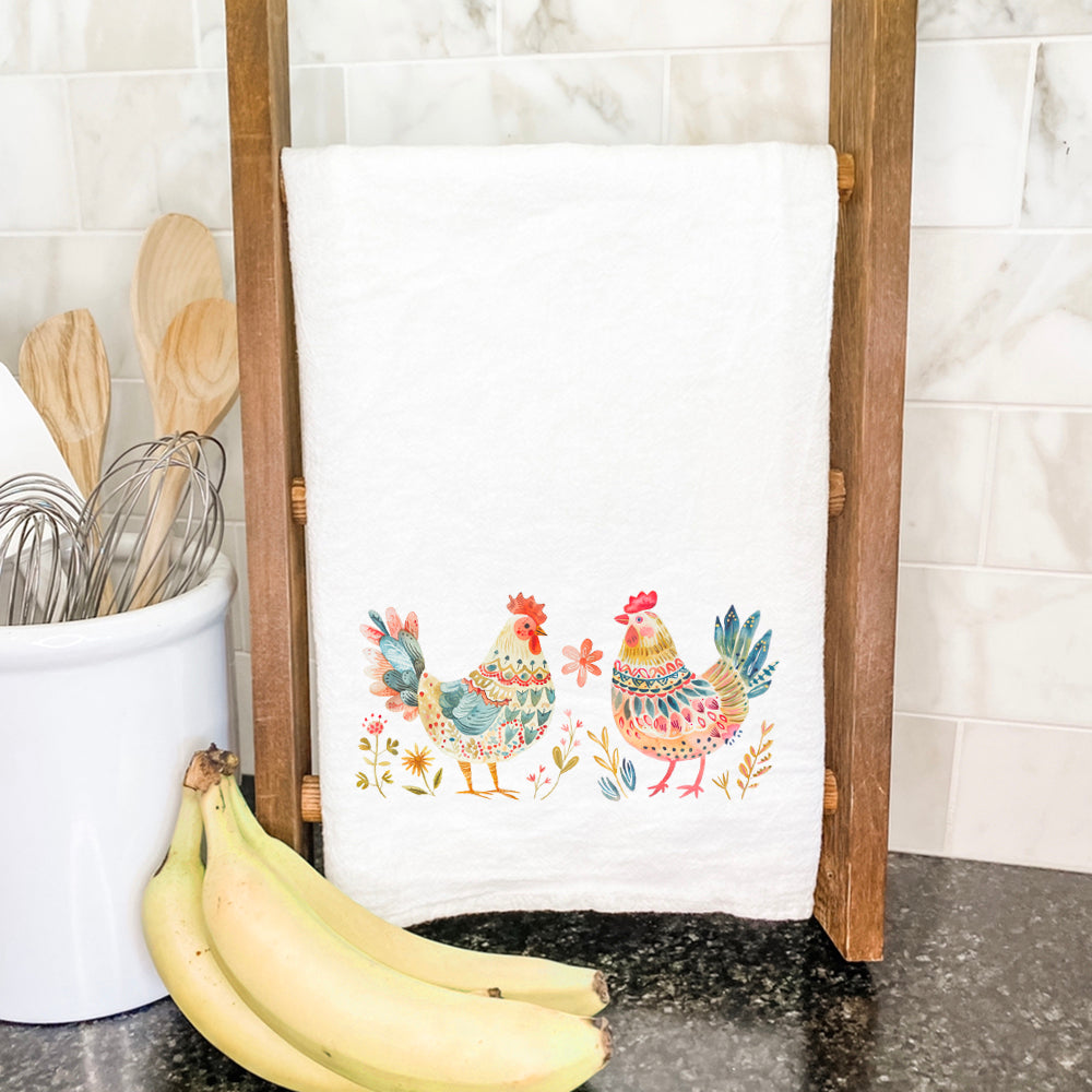 Folk-art Chickens - Cotton Tea Towel