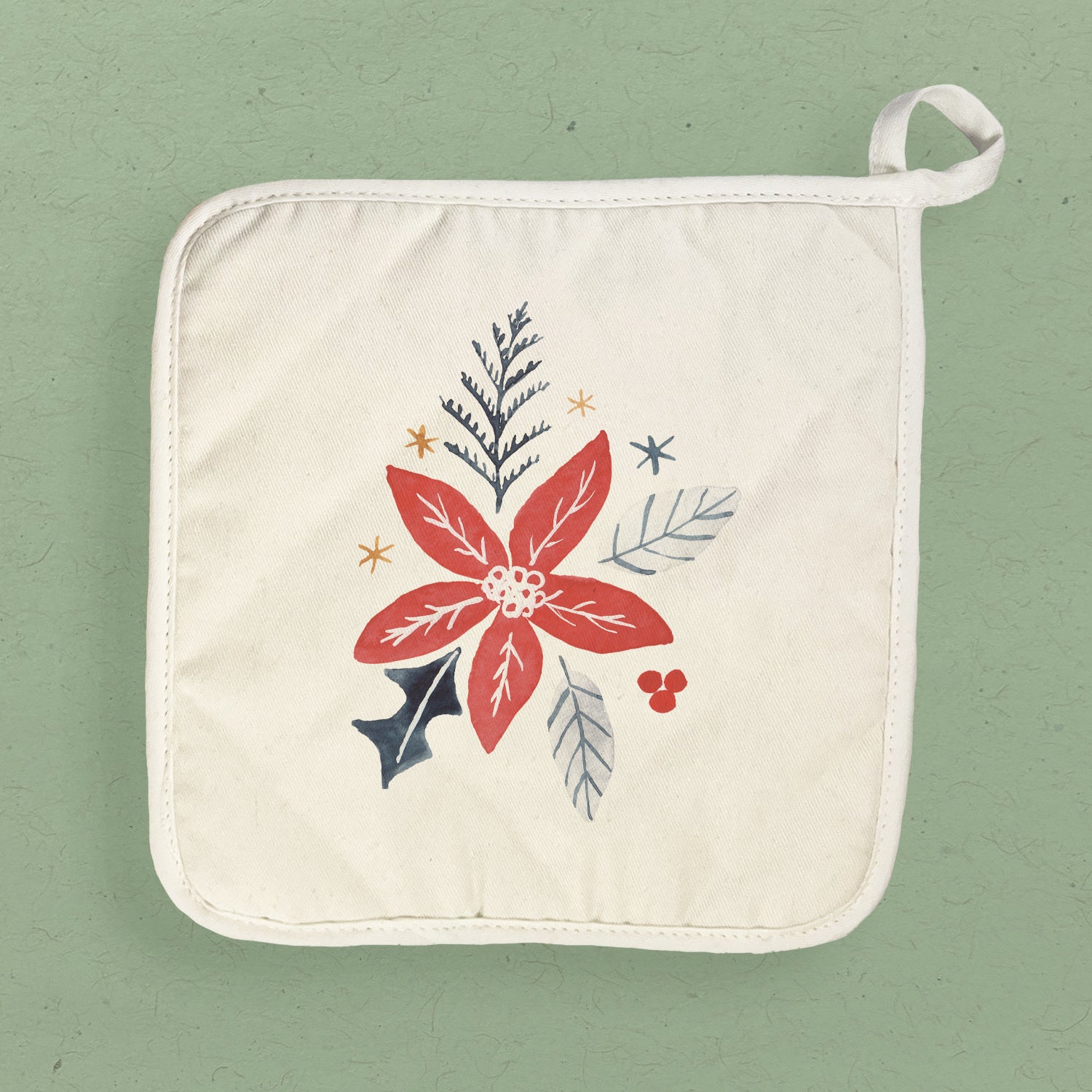 Hand Drawn Red Poinsettia - Customizable Cotton Pot Holder
