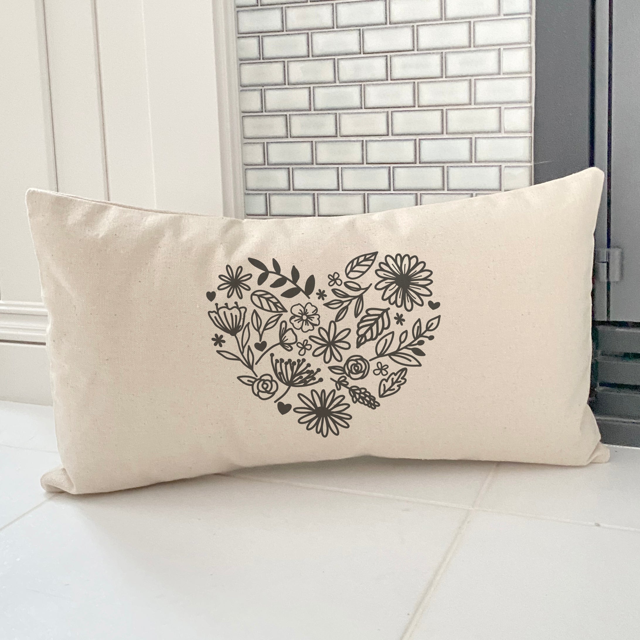 Heart of Flowers - Rectangular Canvas Pillow