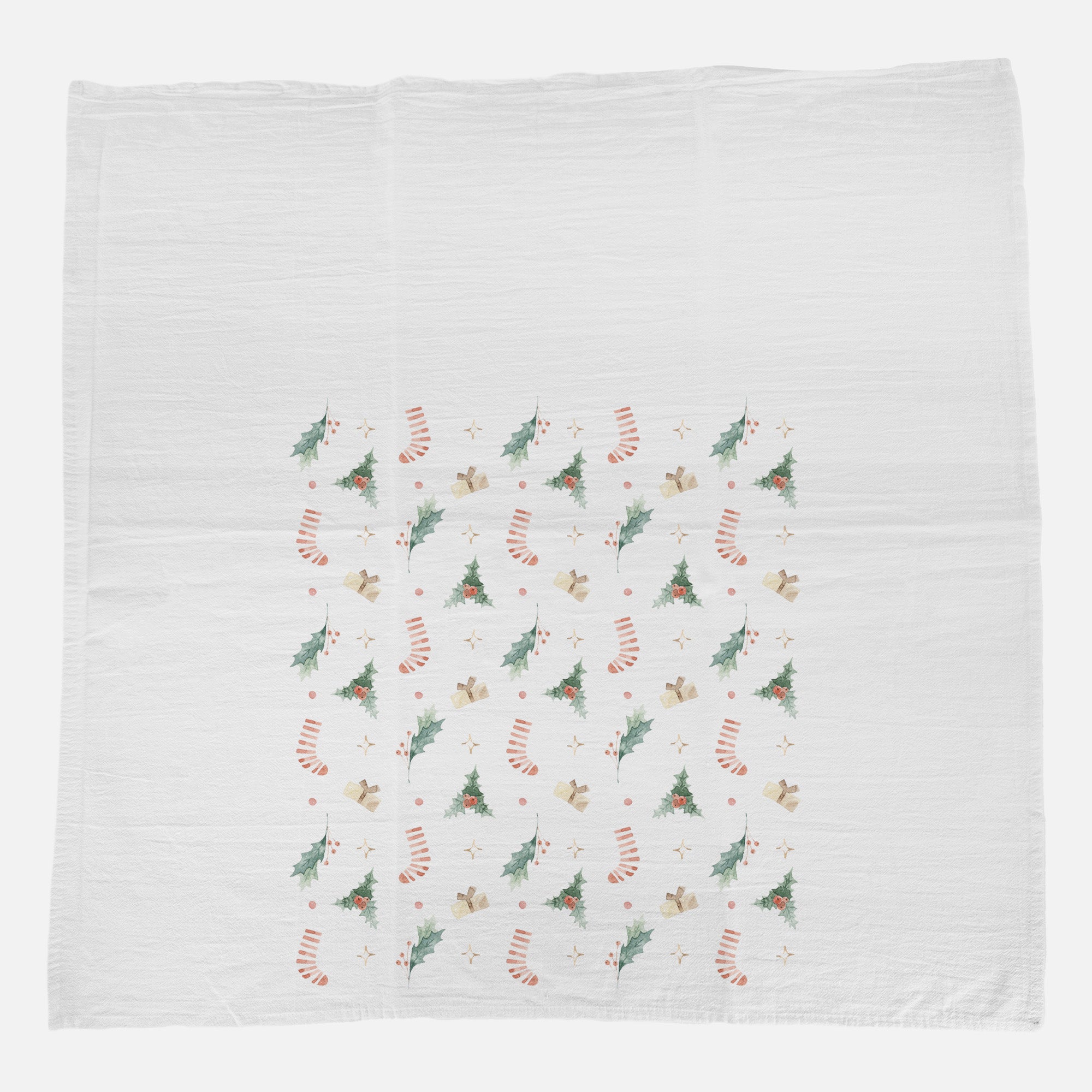 Made from absorbent 100% cotton, our flour sack towels feature hemmed edges for a clean finish. Printed with permanent, water-based inks, these towels are both durable and eco-friendly. Machine washable and dryer safe for easy care. The towel with a loop option includes a convenient hanging loop for effortless drying. Available in two sizes: 27" square (no loop) or 19" x 28" (with loop).