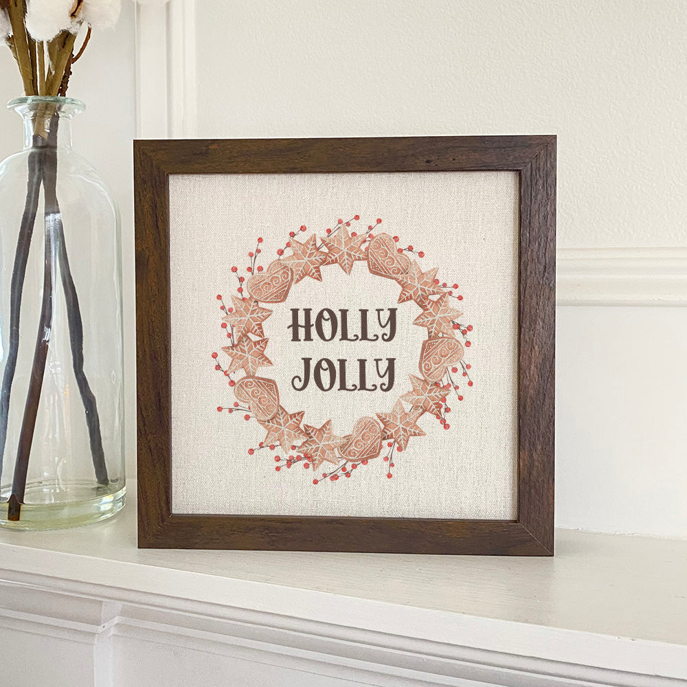 Holly Jolly Gingerbread Wreath - Framed Sign
