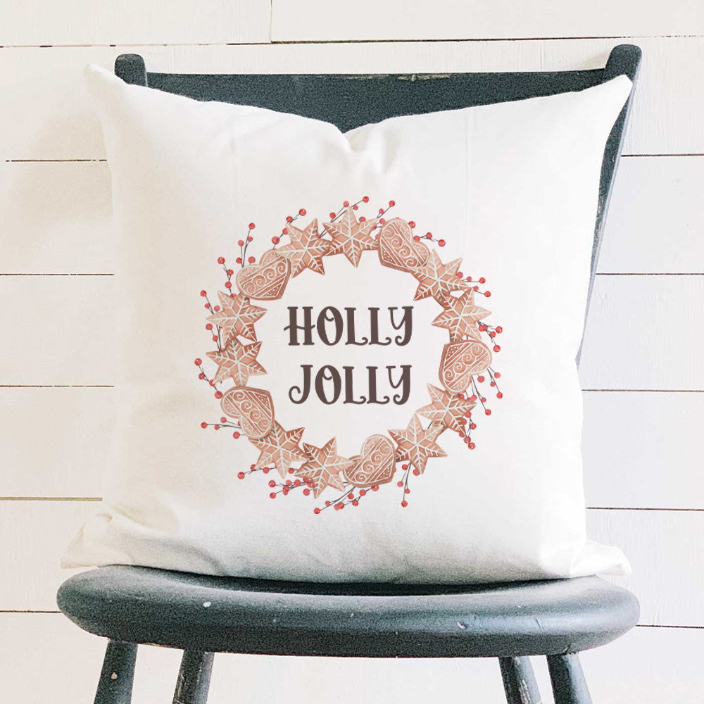 Holly Jolly Gingerbread Wreath - Square Canvas Pillow
