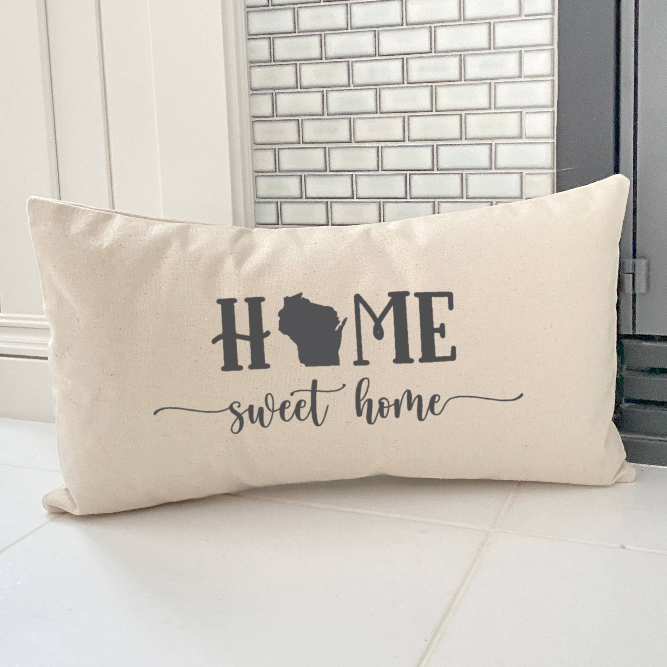 Home Sweet Home (with State) - Custom Rectangular Canvas Pillow