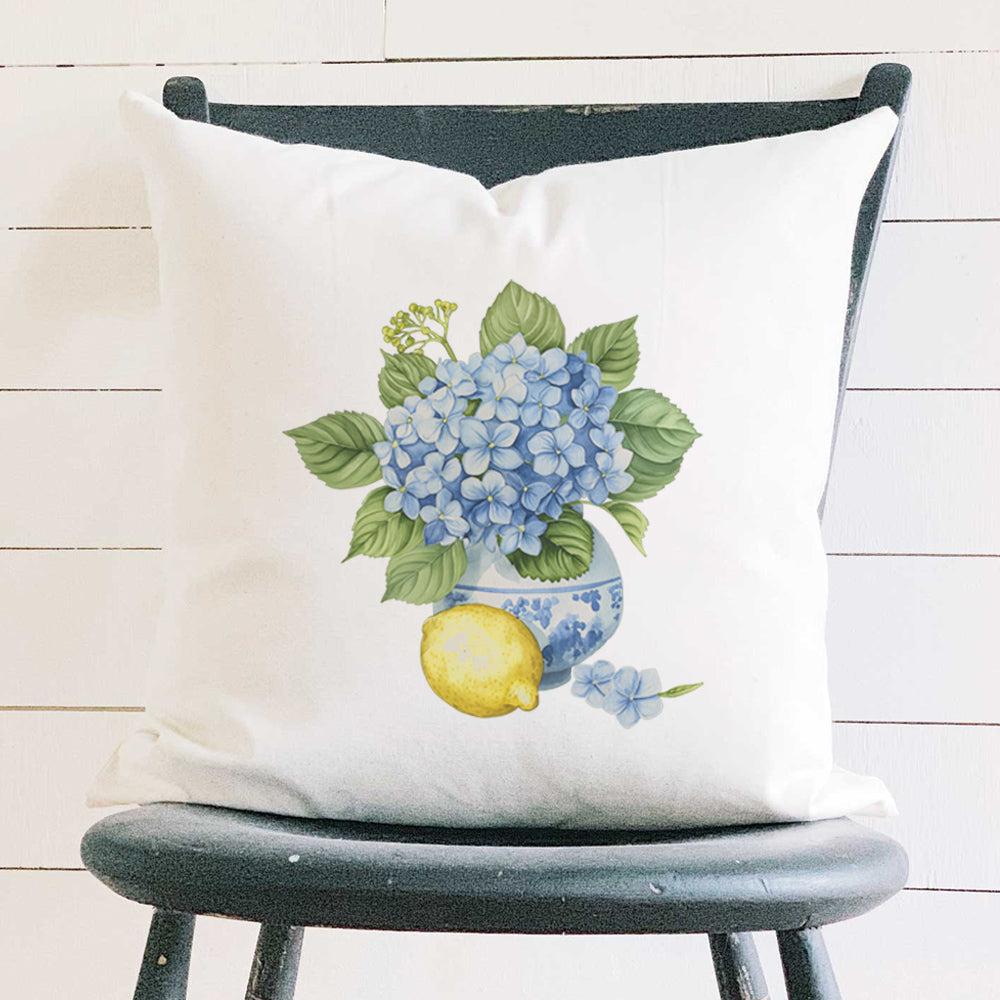 Hydrangea and Lemon Vase - Square Canvas Pillow
