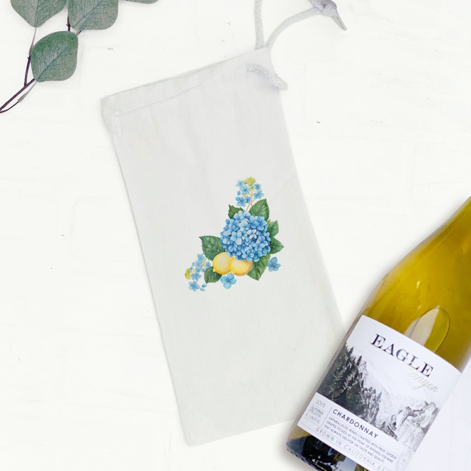 Hydrangeas and Lemons - Summer Canvas Wine Bag