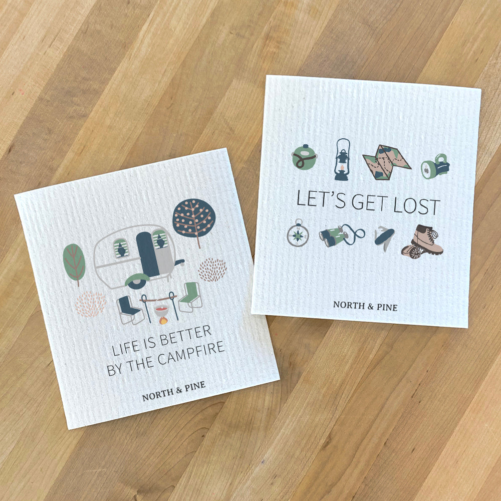 Life Better Campfire, Let's Get Lost - 2pk Swedish Dish Cloth