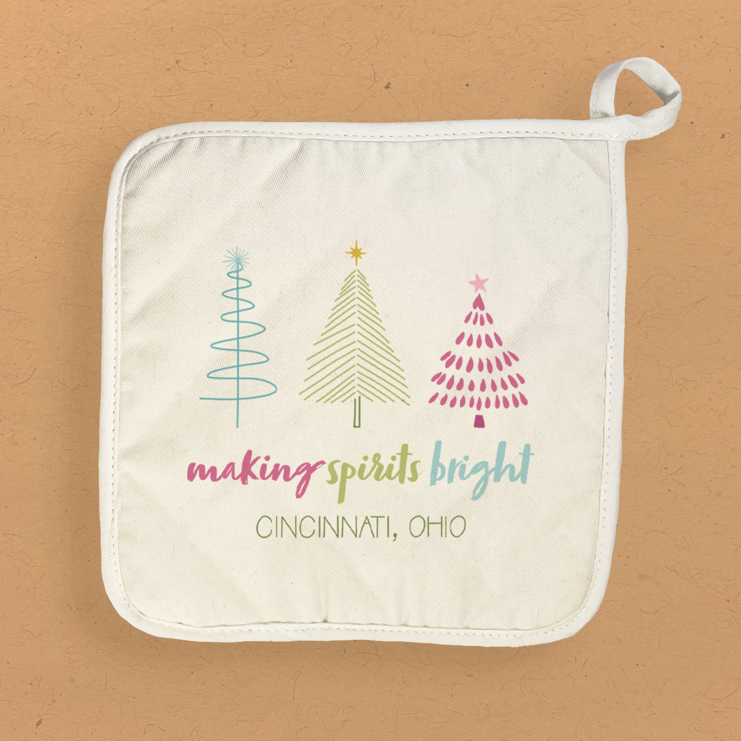 This cotton and terry cloth pot holder's convenient square shape makes it perfect to use as a hot pad to protect counters and tabletops from hot cookware and to use while handling pots and pans on the stovetop. Our beautiful designs are printed-to-order in rural Wisconsin using vibrant water-based inks.