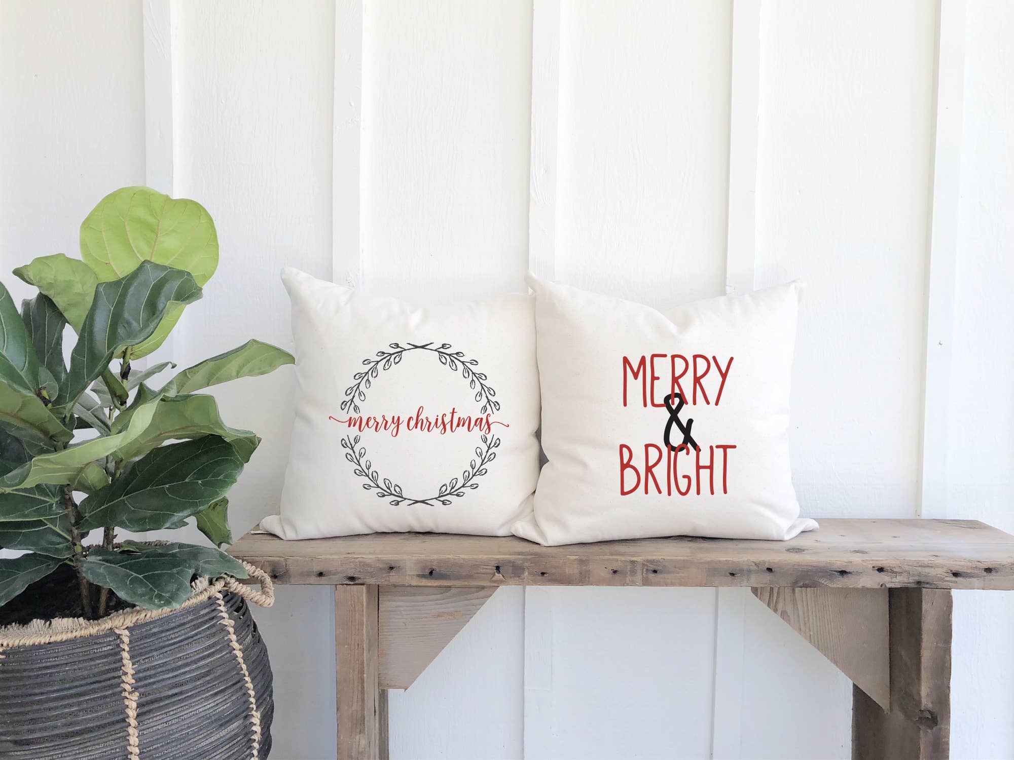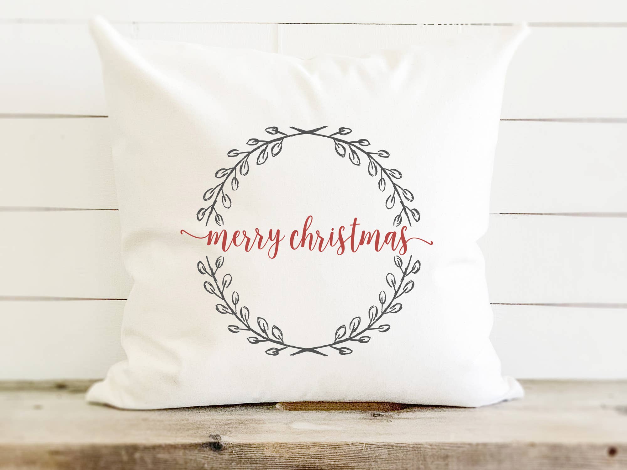 Merry Christmas Wreath - Square Canvas Pillow