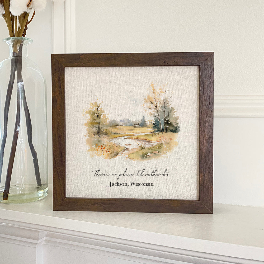 Our beautifully designed prints feature a box frame crafted from durable engineered wood, and wrapped in a rich walnut or elegant white washed veneer. The wide profile frame is perfect for displaying on a shelf or mantle but is also lightweight and ready to hang on the wall! All printing is done in the USA with eco-friendly inks on a linen-textured background for a sophisticated look.