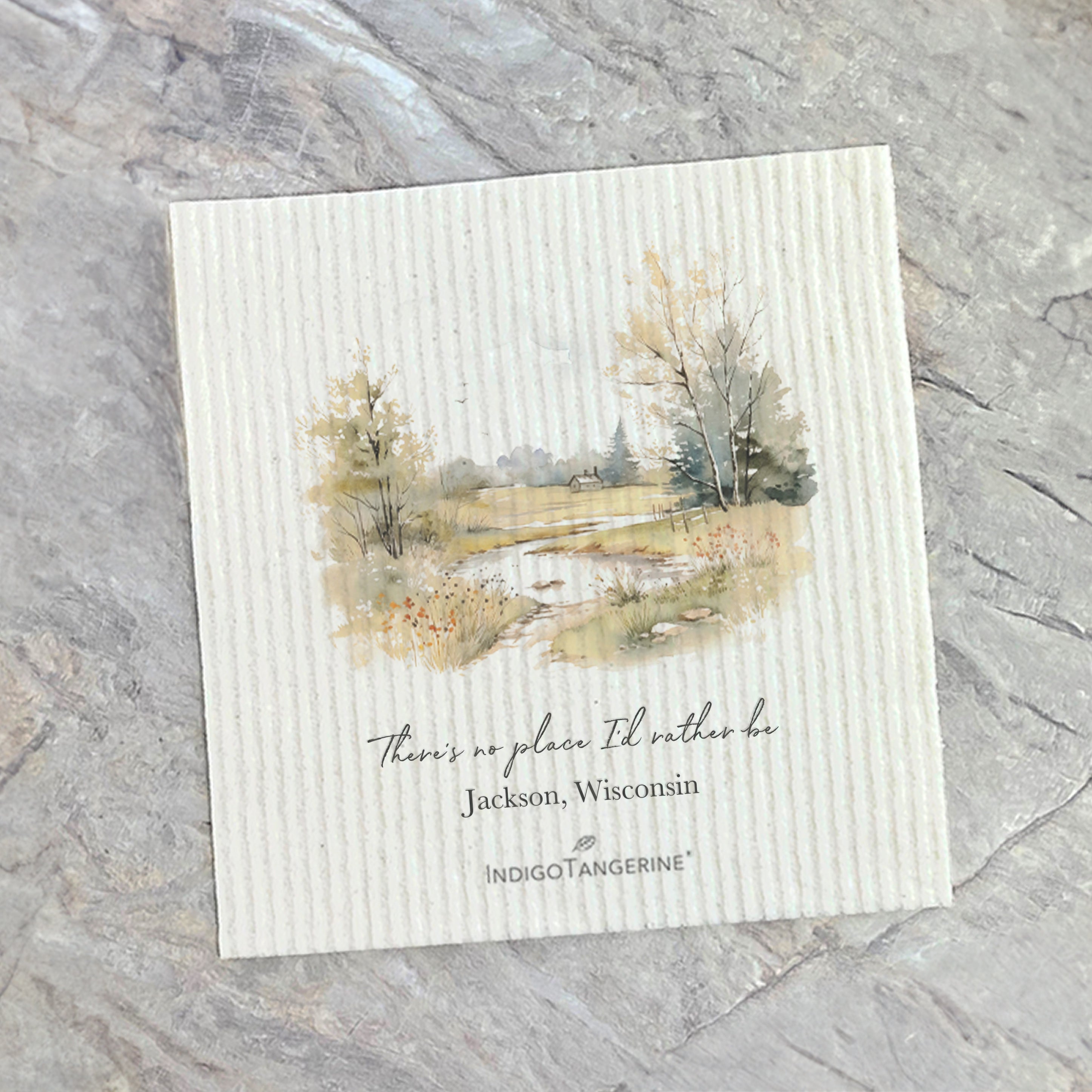 No Place I'd Rather Be w/ City, State - Custom Swedish Dish Cloth