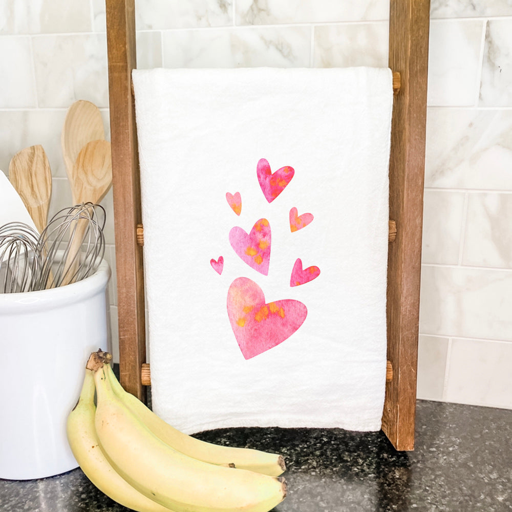 Orange and Pink Group of Hearts - Cotton Tea Towel