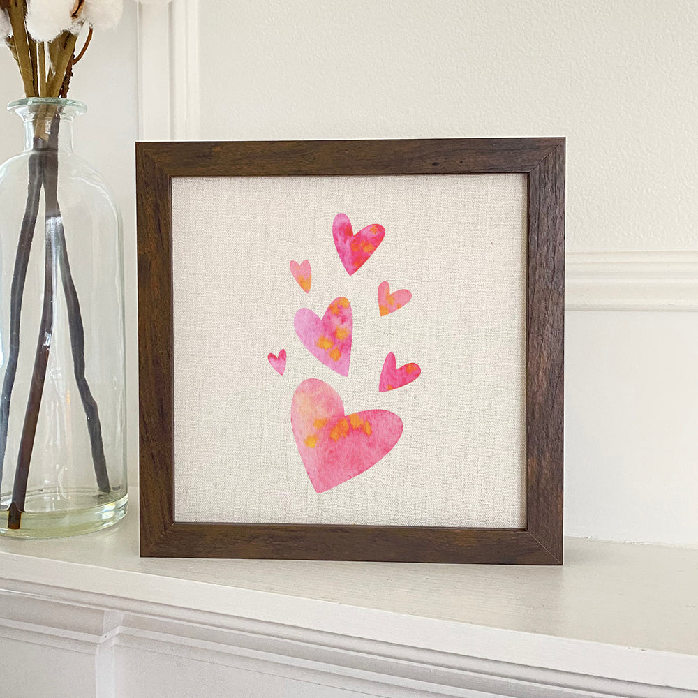 Orange and Pink Group of Hearts - Framed Sign