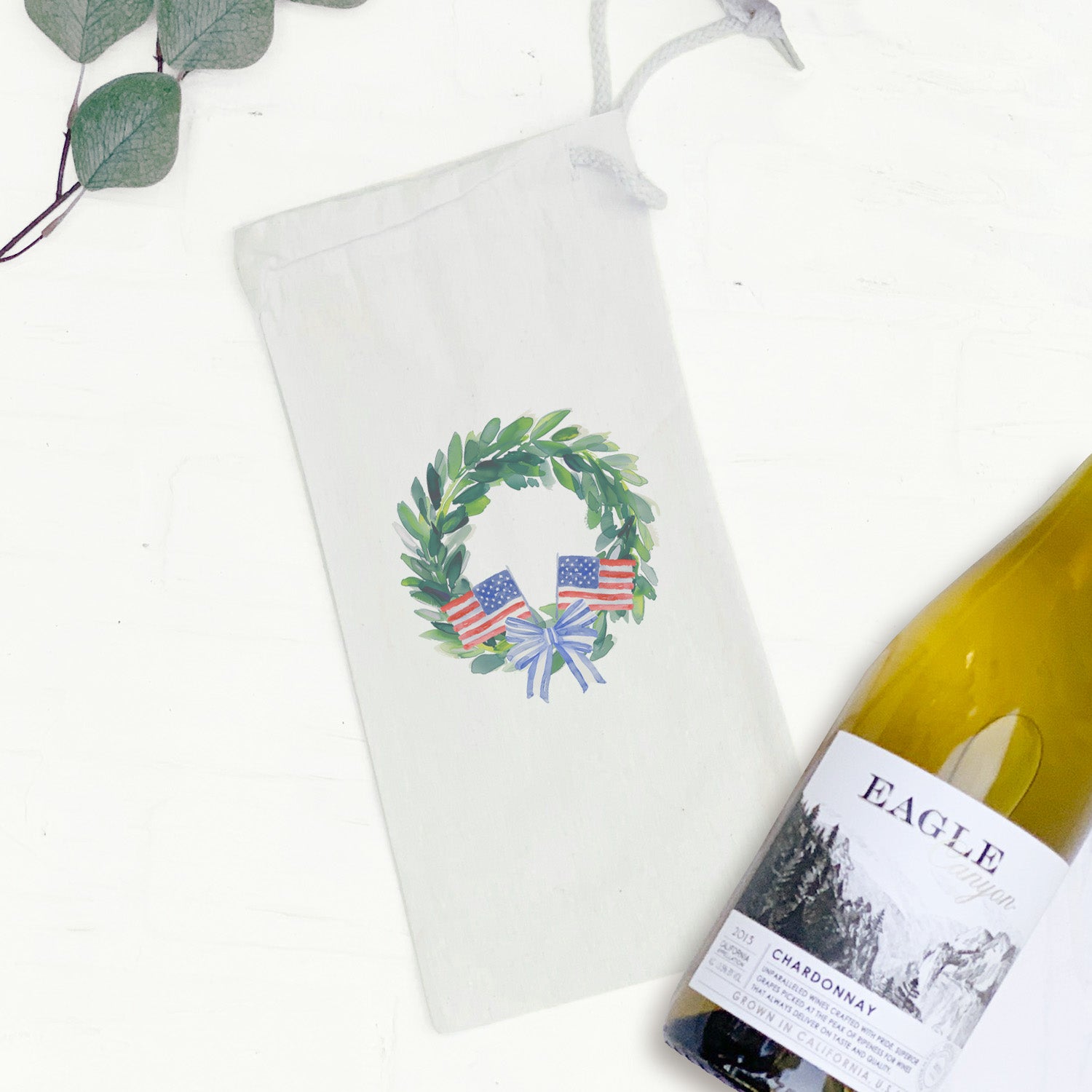 Patriotic Flag Wreath -Canvas Wine Bag