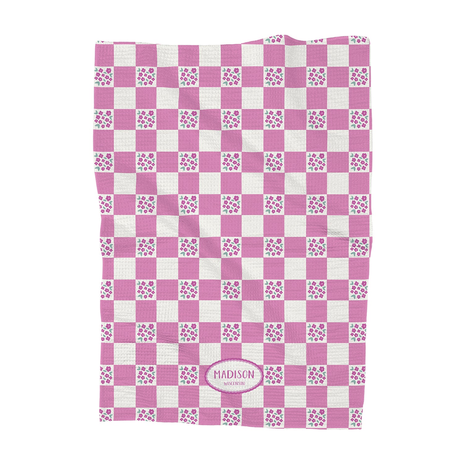 Pink Floral Picnic Plaid - Custom Waffle Weave Towel