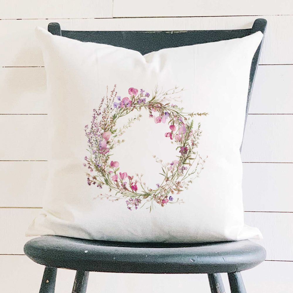 Purple Spring Wreath - Square Canvas Pillow