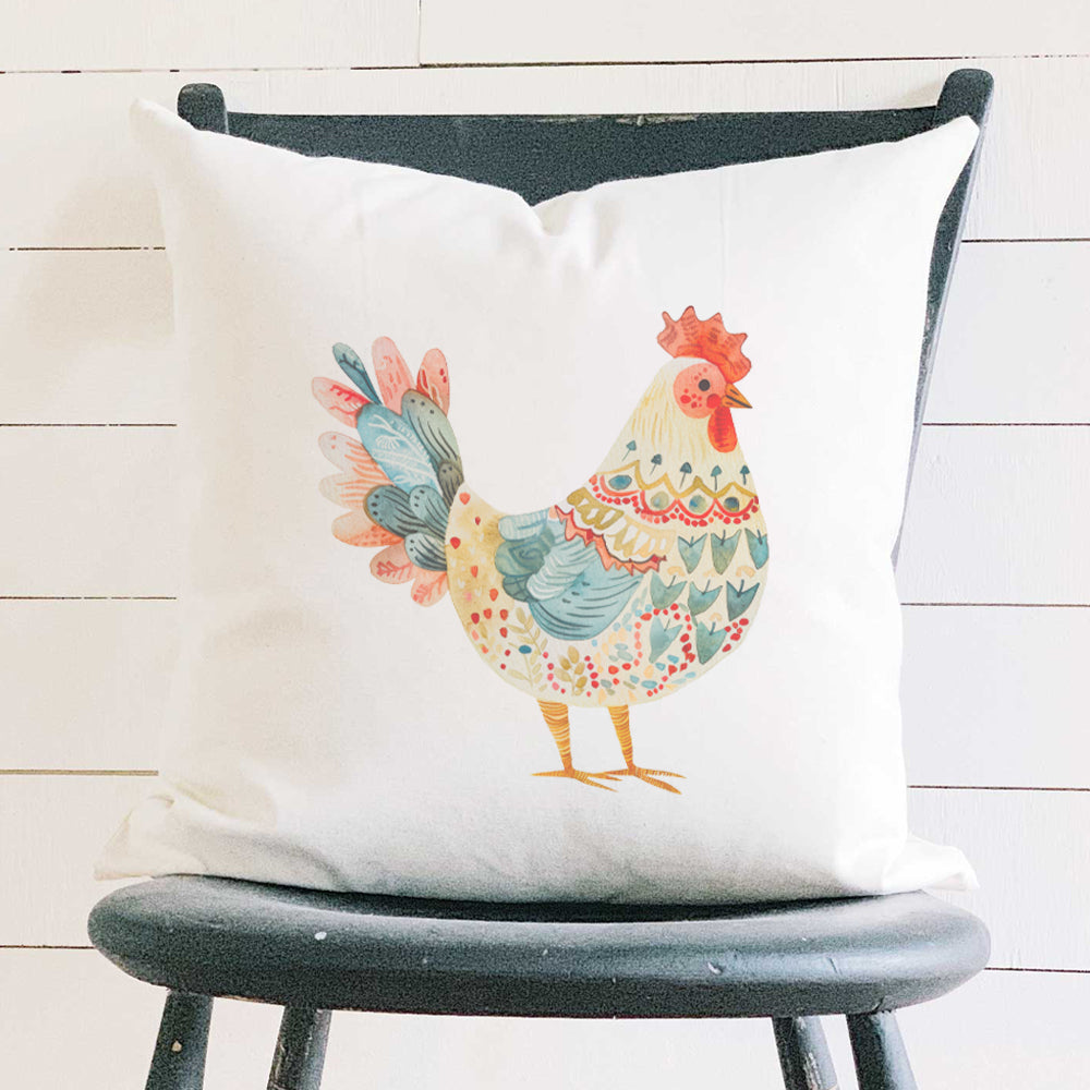 Red and Blue Folk-Art Chicken - Patriotic Throw Pillow