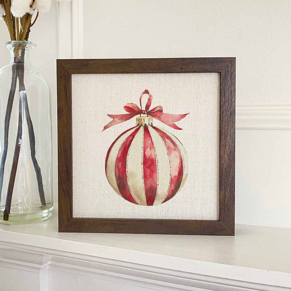Red and White Stripe Ornament - Customizable Framed Sign