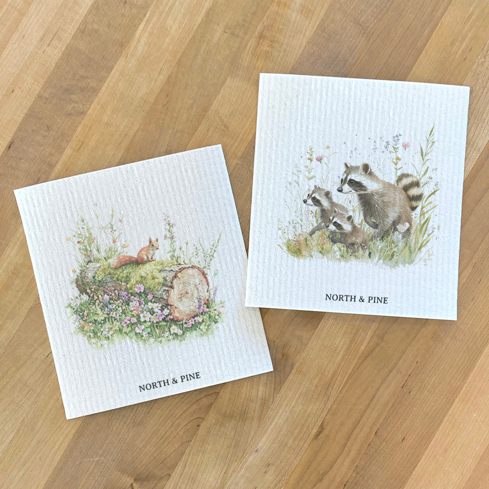 Red Squirrel & Raccoon Family - 2pk Swedish Dish Cloth