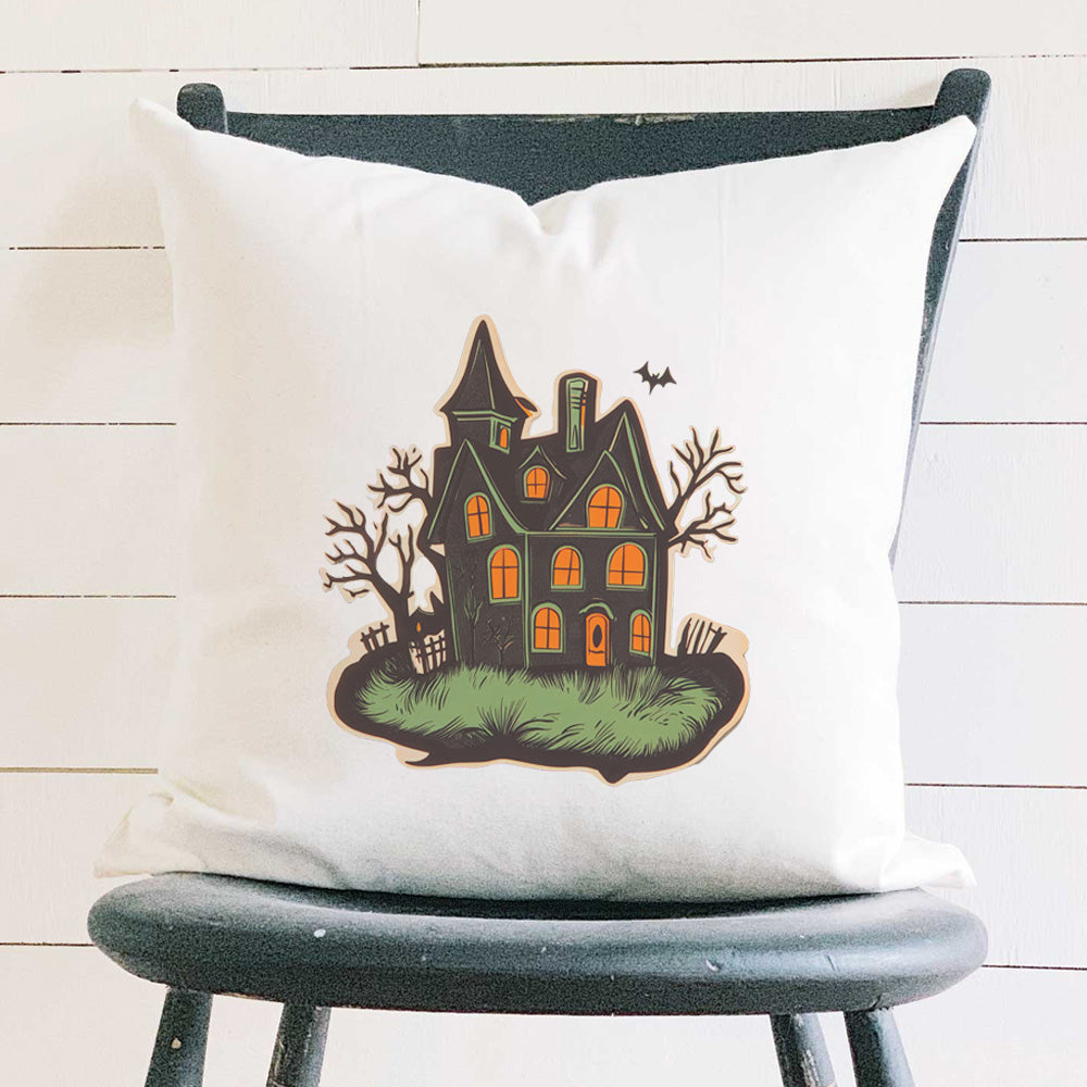 Retro Haunted House - Customizable Halloween Square Canvas Pillow