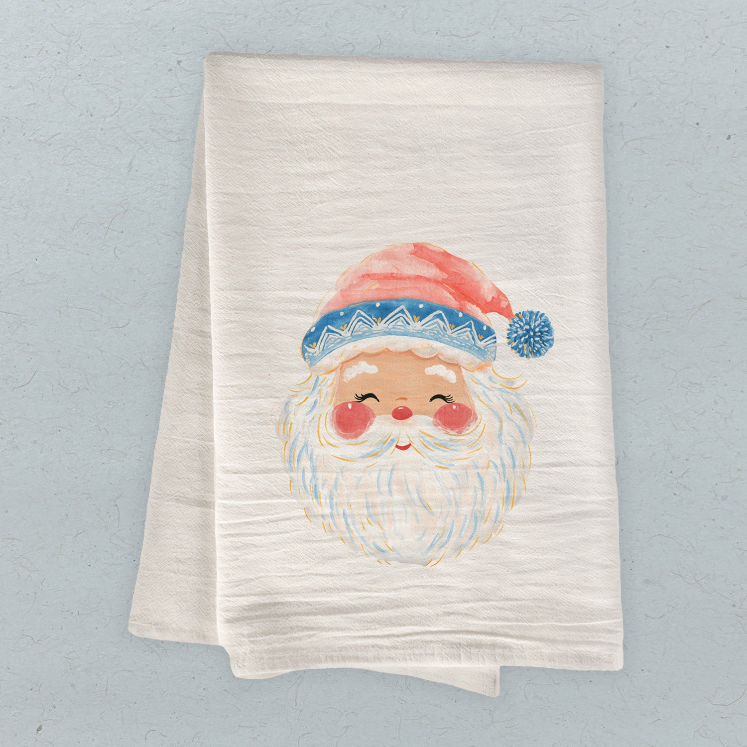 Rosy Cheeked Santa - Customizable Cotton Tea Towel
