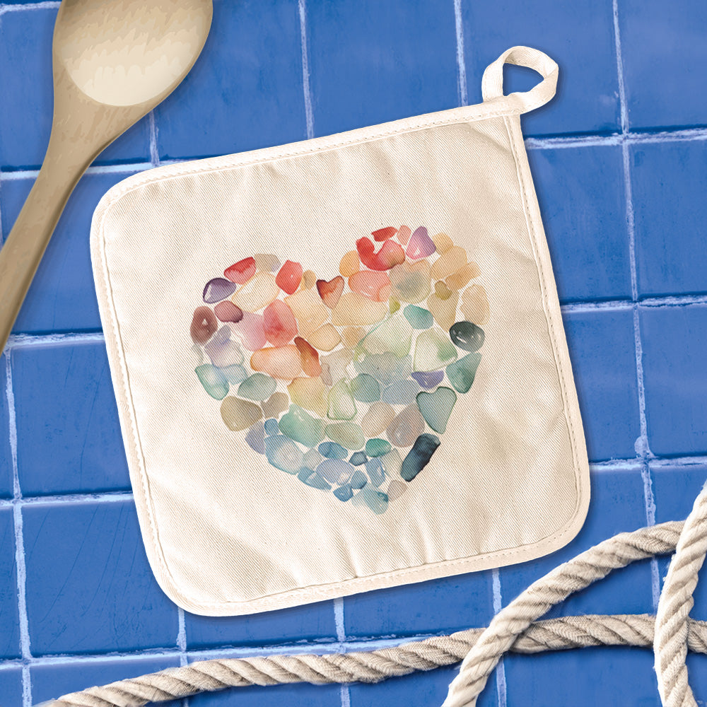 Sea Glass Heart - Valentine's Day Cotton Pot Holder