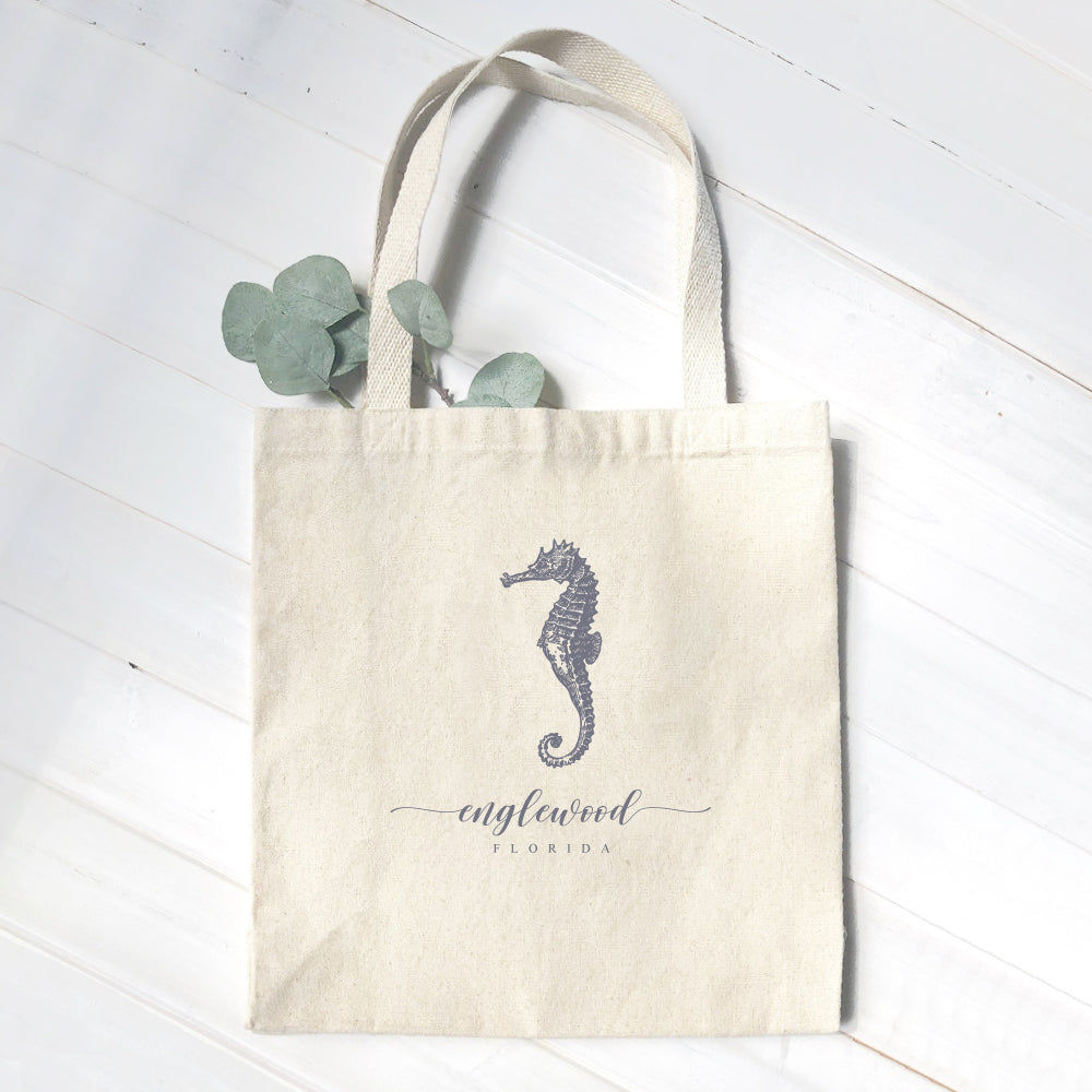 Seahorse w/ City, State - Custom Canvas Tote Bag