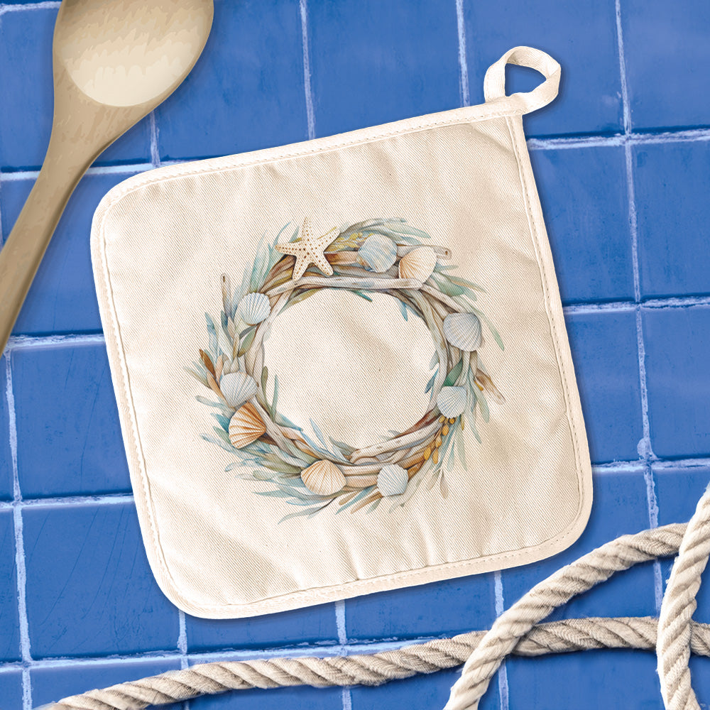 Seashell Driftwood Wreath - Customizable Cotton Pot Holder