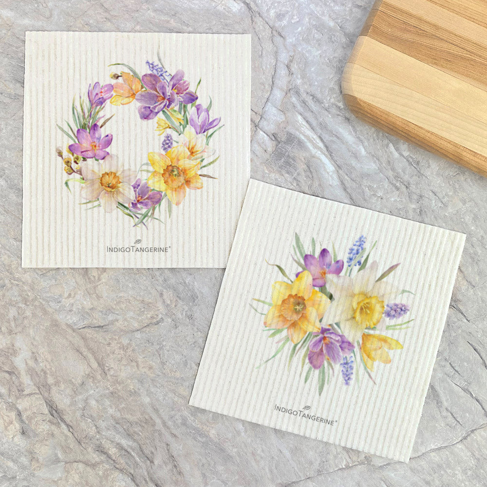 Set of Crocus Wreath & Floral Bunch - Spring 2pk Swedish Dish Cloth