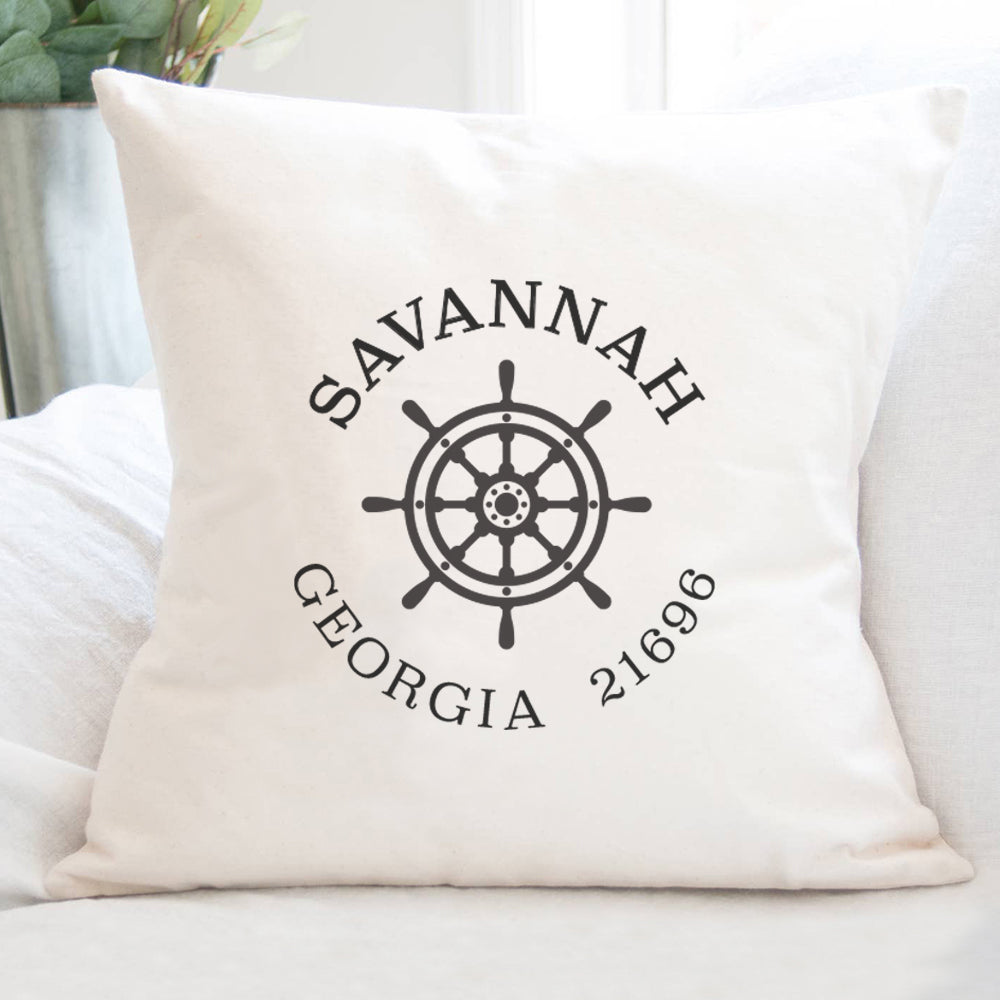 Ship Wheel w/ City and State - Custom Square Canvas Pillow