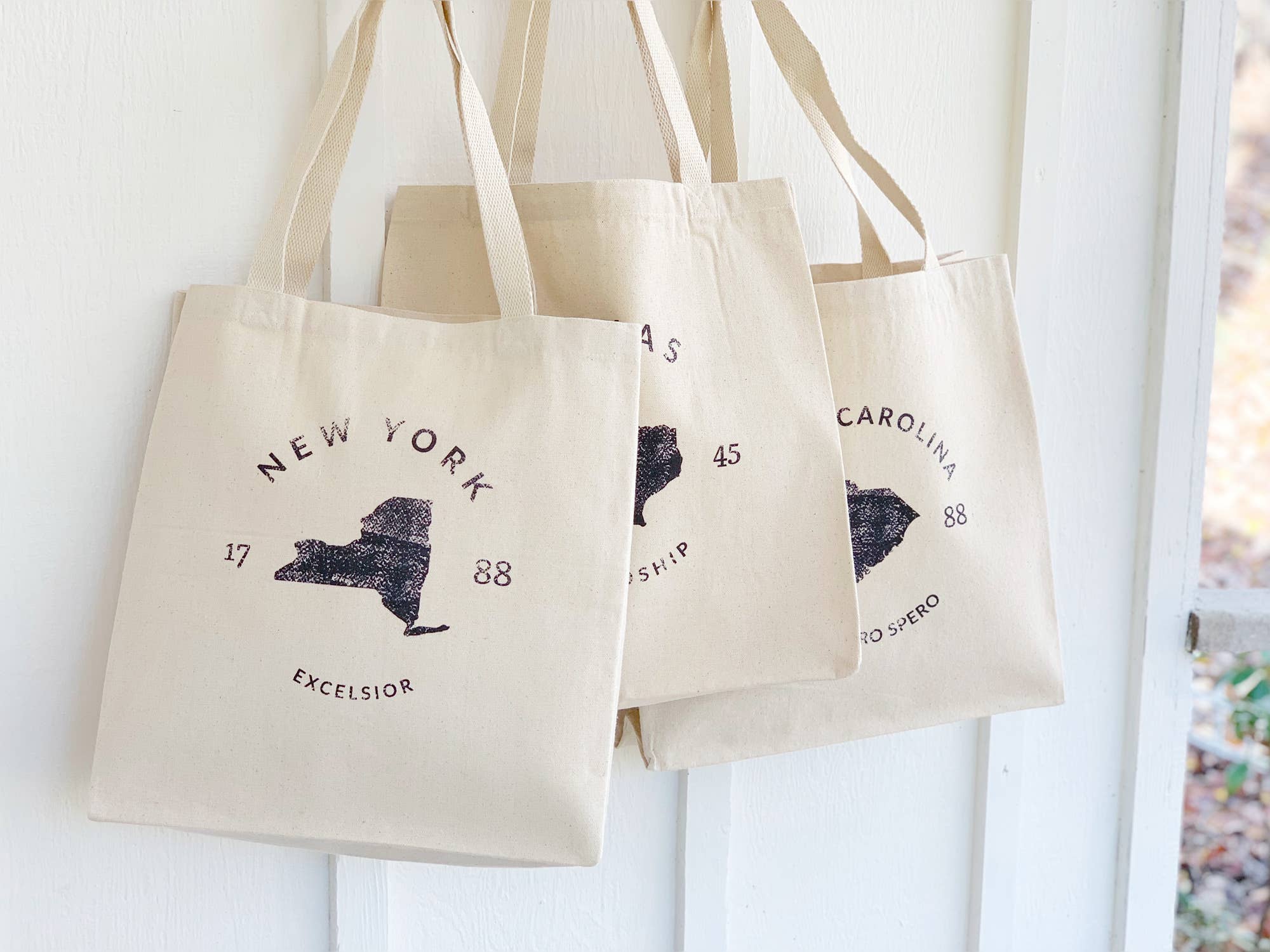 Each tote is handprinted with unique designs, created with water-based inks that are built to last without fading or wearing over time. Made from durable 12 oz canvas with reinforced webbing straps and a comfortable 13" strap drop, our totes are perfect for carrying your essentials. With a size of 14" tall by 14" wide by 5" deep, it's as functional as it is stylish. Crafted with care by our small business in rural Wisconsin.