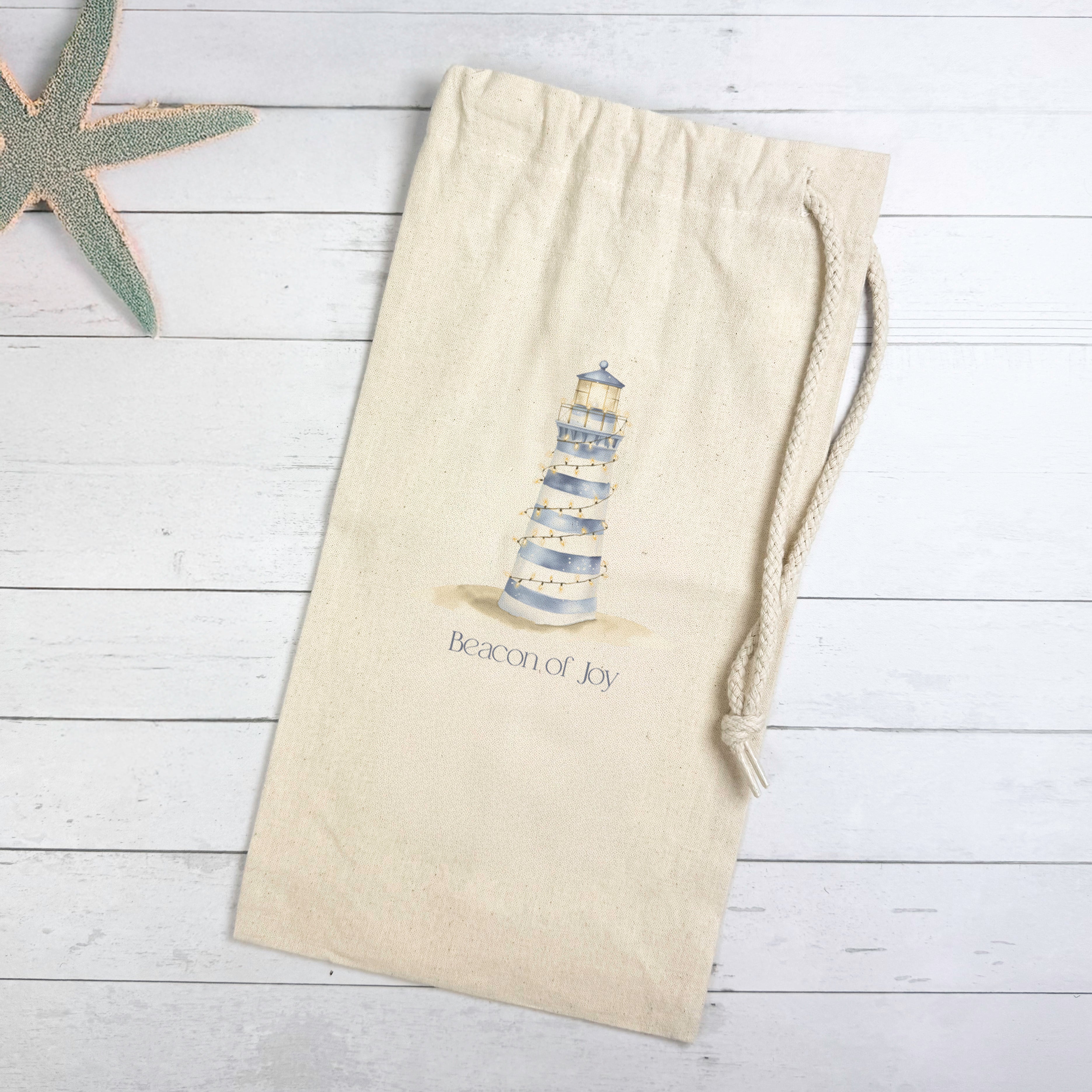 The Merry Lighthouse - Winter Customizable Canvas Wine Bag