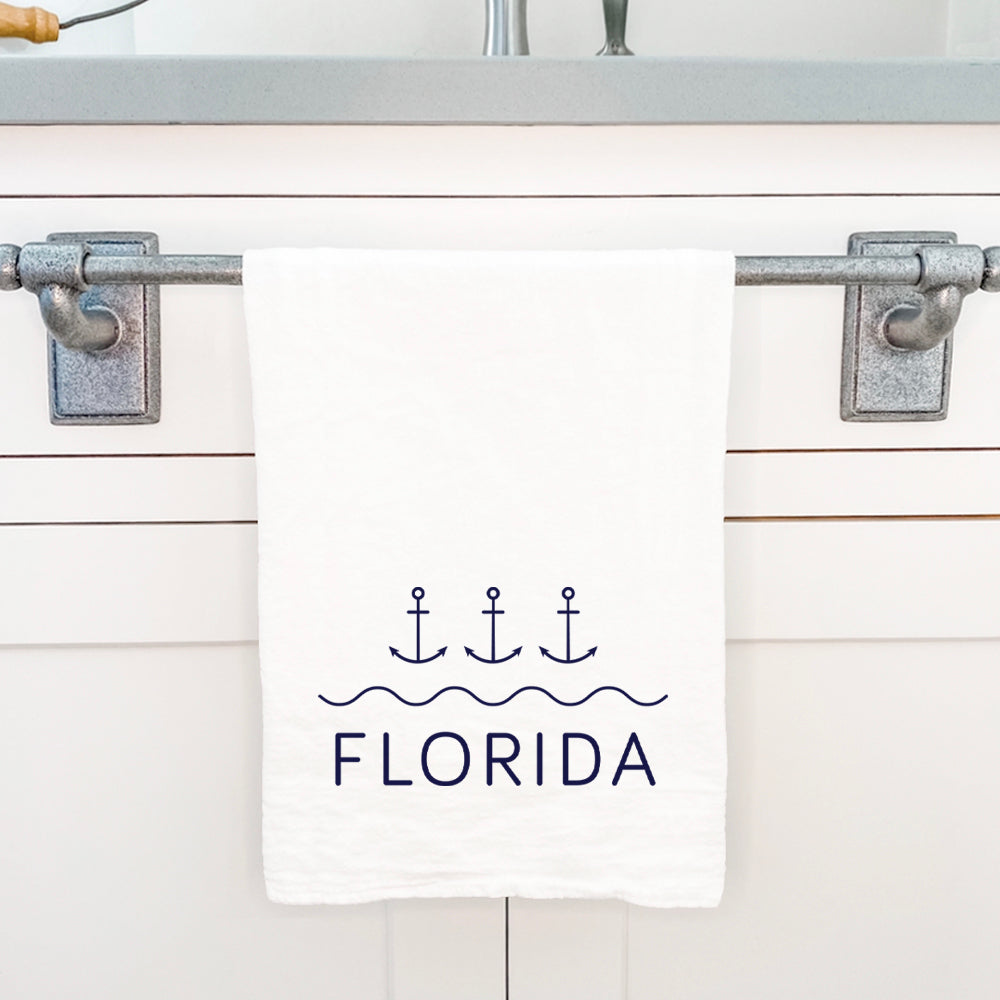 Three Anchors w/ State - Custom Cotton Tea Towel