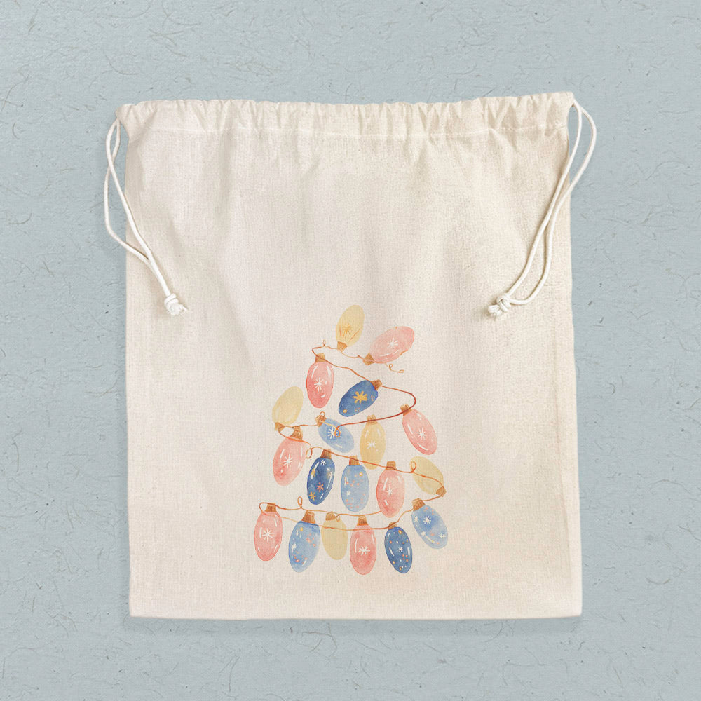 Twinkling Lights Tree - Customizable Cotton Cinch Bag