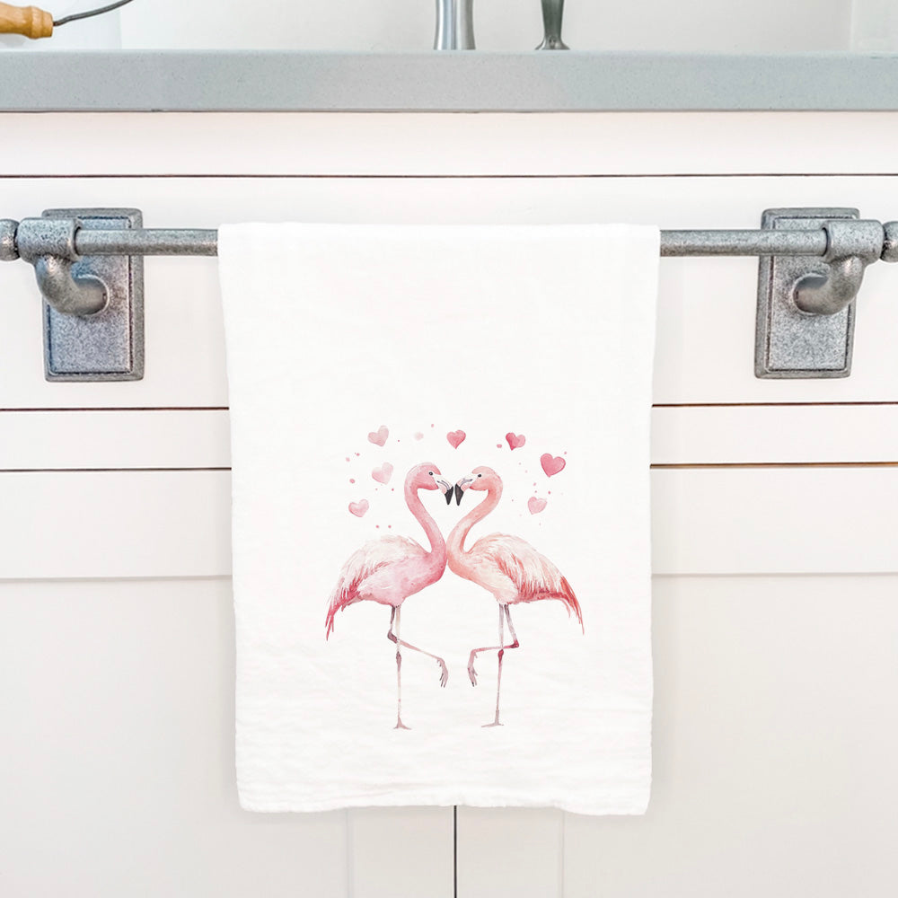 Valentine Flamingos - Valentine's Day Cotton Tea Towel