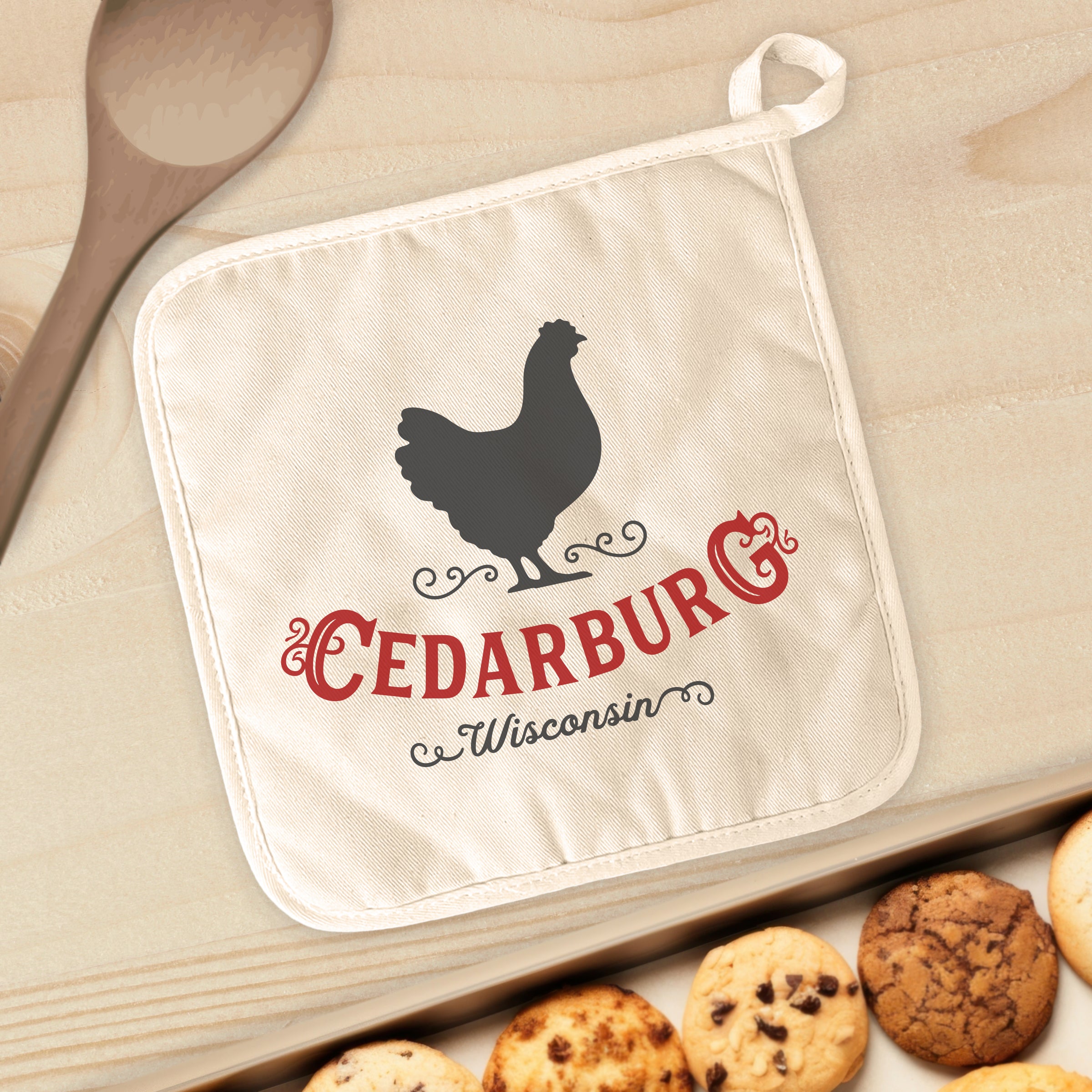 This cotton and terry cloth pot holder's convenient square shape makes it perfect to use as a hot pad to protect counters and tabletops from hot cookware and to use while handling pots and pans on the stovetop. Our beautiful designs are printed-to-order in rural Wisconsin using vibrant water-based inks.