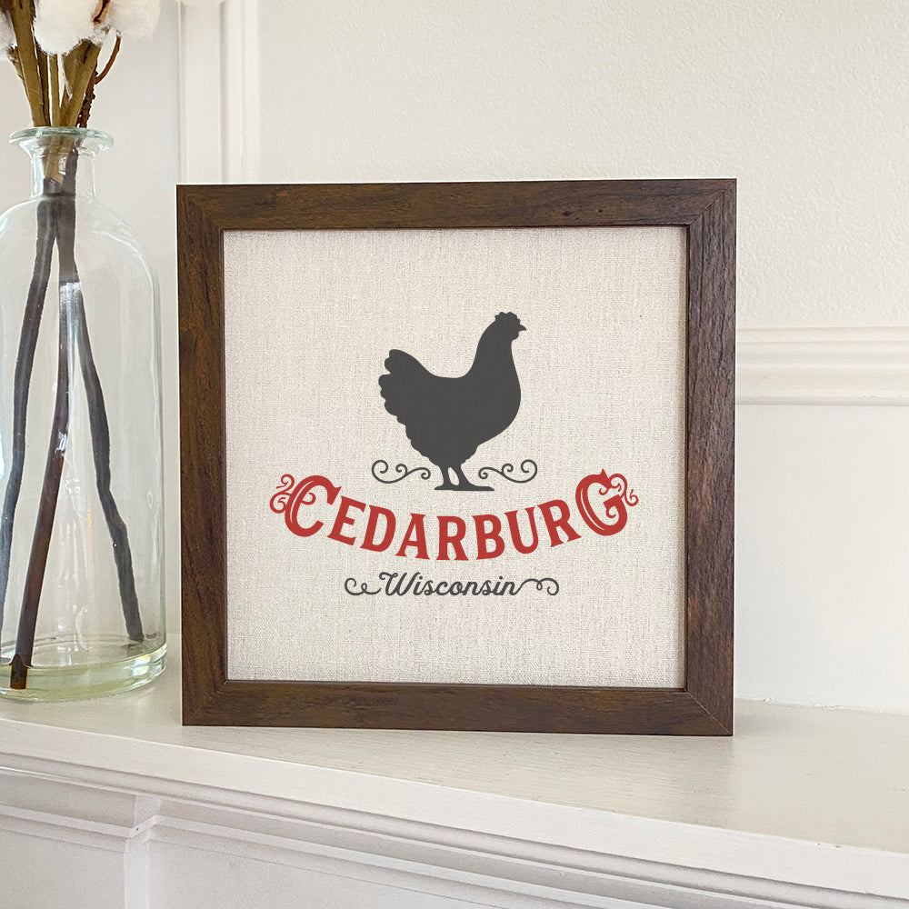 Vintage Icon (Chicken) City/State - Custom Framed Sign