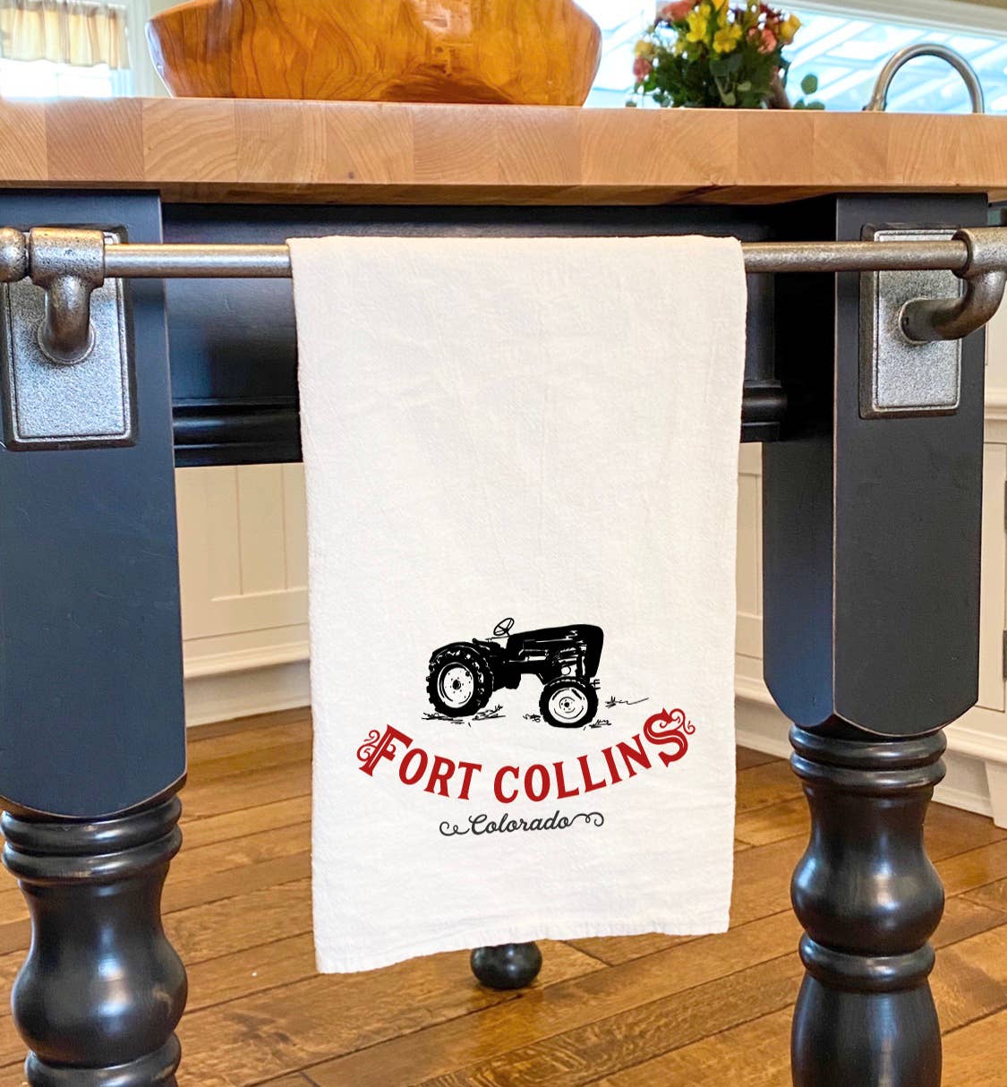 Vintage Icon (Tractor) City/State - Custom Cotton Tea Towel